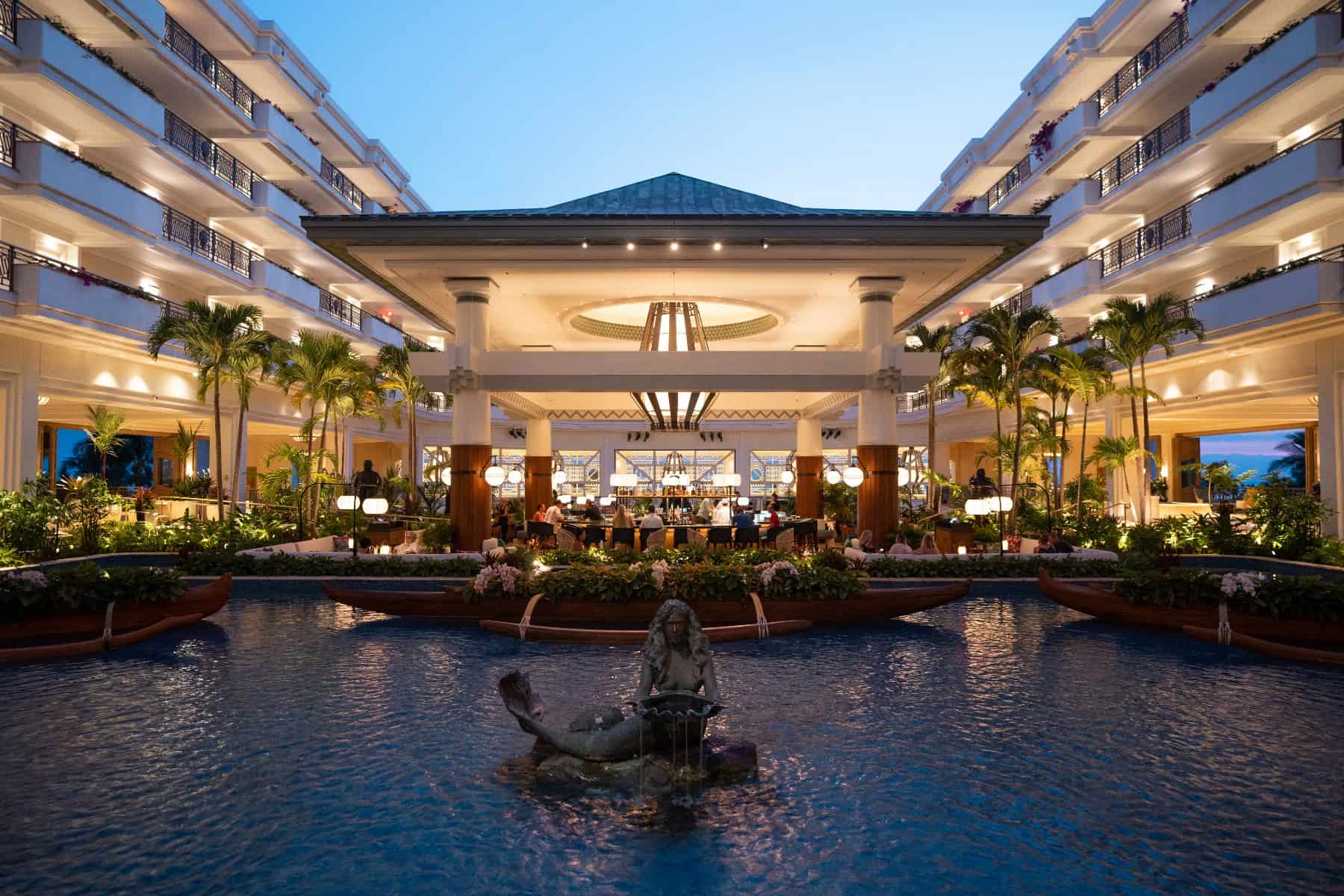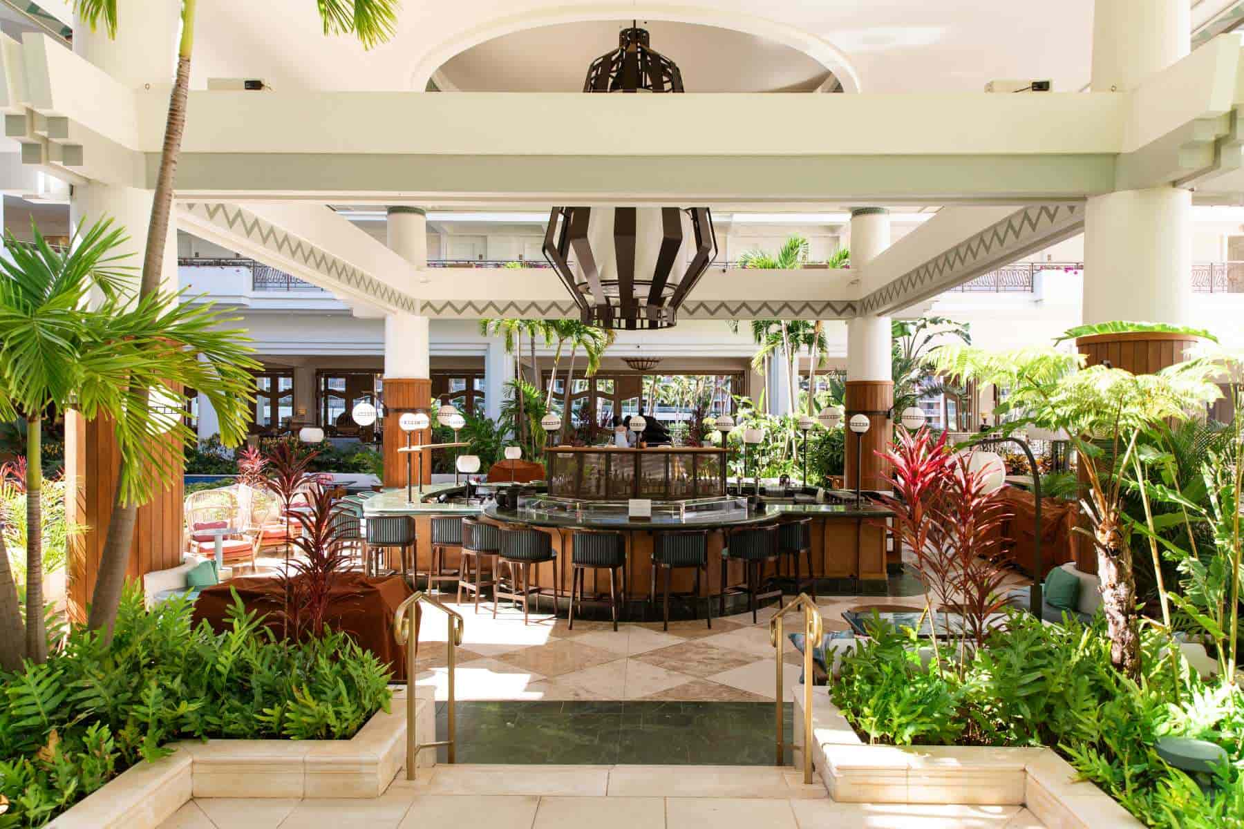 When the sun starts to set, head to Humuhumunukunukuāpuaʻa, to experience the refresh of this signature seafood and steakhouse restaurant set amid a beachfront lagoon. The thatched-roof dining area features a circular bar with a glass aquarium, which allows sight of fish swimming beneath you and looks out onto stunning views of the Pacific. Start with a tiki-style craft cocktail, share some Ahi tuna ceviche served in a fresh coconut and go for the 60-ounce porterhouse steak. If you plan ahead, you can also book unique dining experiences like the sunset Seaside Toast or a romantic Waterfall Private Dining option.