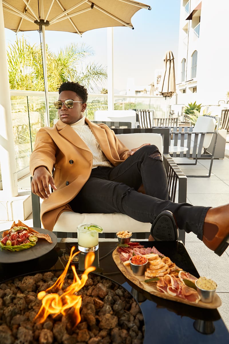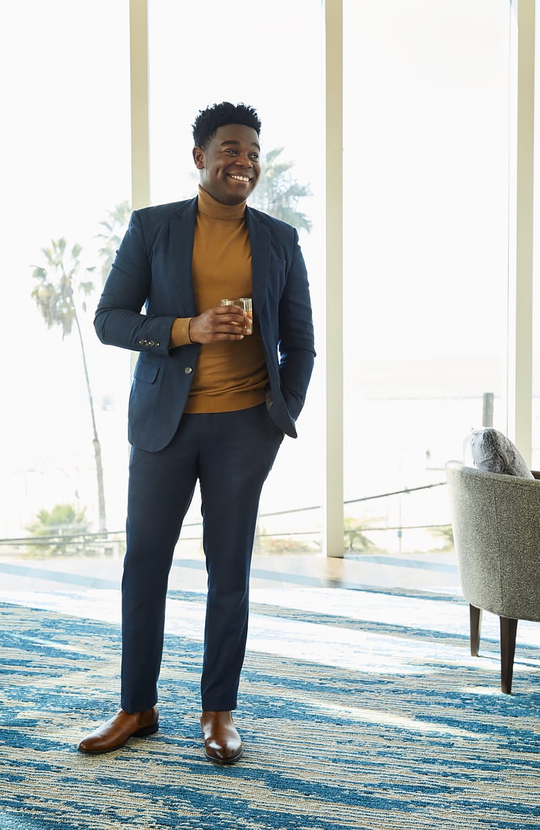 Stints at the Taj Mahal in Atlantic City, off-Broadway shows and TV appearances swiftly followed. However, it was landing the part of Walter Hill—a teen with Asperger’s syndrome in the 2012 pop-gospel comedy “Joyful Noise” alongside Dolly Parton and Queen Latifah—that cemented his big break. “When [the movie] came out and I got all this attention, I said, you know what, I’m just going to leave New Jersey. So, I bought a first-class, one-way ticket, got to Los Angeles and realized I had no money,” he says with a self-effacing laugh.