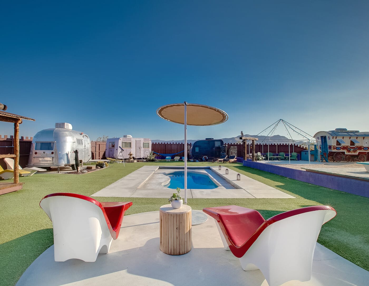 Unlike any RV park, the grounds of Hicksville Trailer Palace boast multiple trailers with varying themes and decor. From a French glamping trailer to a freakshow-themed carnival train car filled with oddities from days gone by, you’ll be transported to a different world no matter which you choose. With full kitchens, a pool and a ball pit, you’ll have the time of your life at this one-of-a-kind “trailer park.”