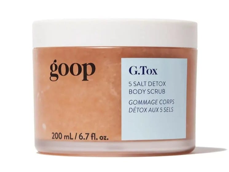 Trade your sweet for salty in the G. Tox 5 Salt Detox Body Scrub by Goop Beauty. This product containsāyou guessed itāfive salts: Himalayan pink salt, Dead Sea salt, Celtic Sea salt, New Zealand solar salt and epsom salt. It scrubs away dead skin cells while the combo of oils helps to lock in moisture.