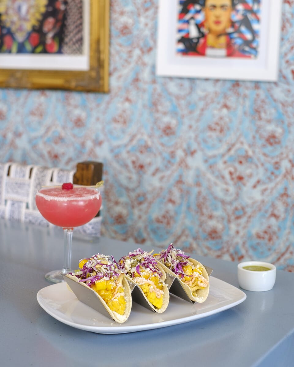 This place is an Instagram post all wrapped up in pretty pink wallpaper. Located at the adults-only La Serena Villas, Azucar will have you feeling watermelon sugar high–especially after one of their sandia margaritas. The top level of this ultra-trendy restaurant boasts a rooftop complete with a fireplace, twinkle lights and photo-friendly decor. Channel your inner “I Love Lucy” and cheers over a Pamplemousse Sparkle while overlooking the pool. This cucumber grapefruit fizzy cocktail will have you giggling like Lucille Ball by the end of the night. This is a great spot to hit with the gal pals.