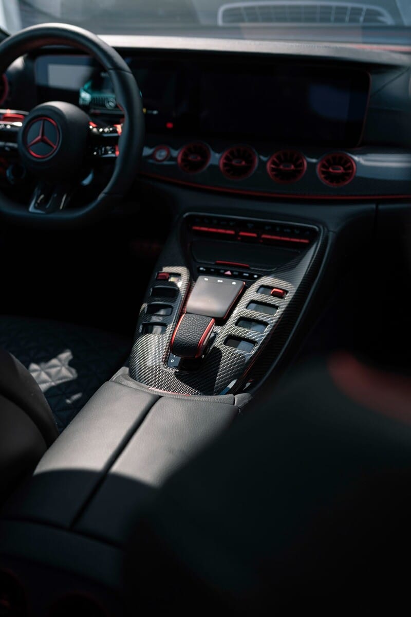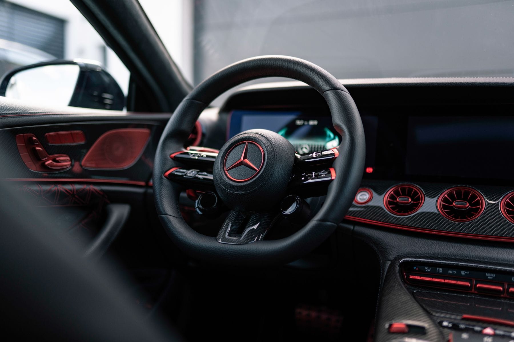 Through the injection of their very own BRABUS 4.0-liter twin-turbocharged high-performance V8 engine, which synchronizes effortlessly with Mercedes’ hybrid drivetrain, BRABUS adds 99 horsepower to the GT 63’s impressive 831 for a grand total of 930 horsepower, effectively earning its name. Combine this with the upgraded version of their 1,550 Nm nine-speed transmission and you get a modern luxury vehicle capable of reaching 100 km/h (roughly 62 mph) in 2.8 seconds. All this is then funneled through a custom exhaust system designed to reduce pressure and maximize power, delivering a sharp yet thunderous engine note akin to the roll of thunder after a blast of lightning.