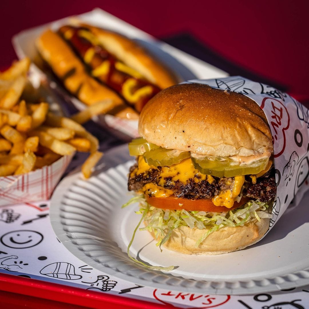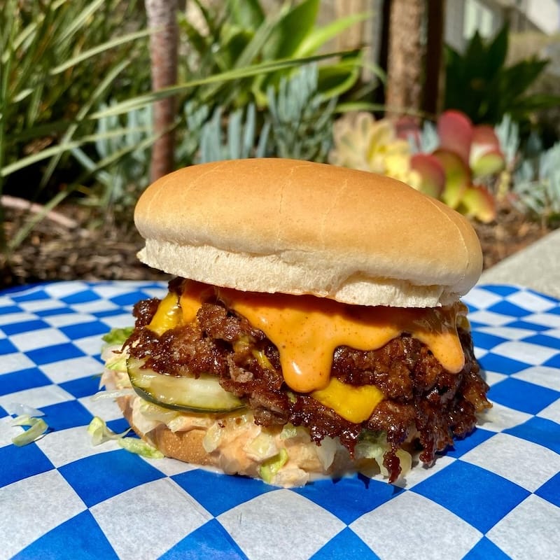 Whether you’re an East LA local or simply need a new burger spot in Echo Park, Lowboy is a community-oriented LA restaurant that serves up stiff drinks and solid burgers. The Lowburger in particular is a flavorful smashburger made with beef chuck, Thousand Island dressing, American cheese, red pepper jam and griddled onions. A Martin’s potato roll acts as the catch-all for all of these ingredients, while the hand-cut fries are served with a zesty garlic aioli. You can also up the ante with a side of vegan chili fries.