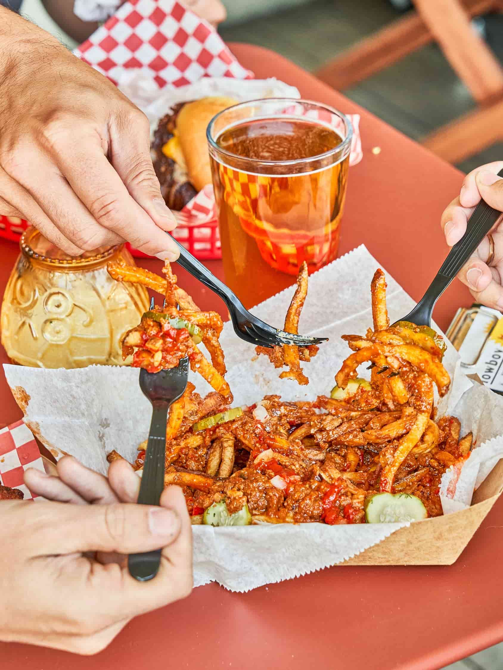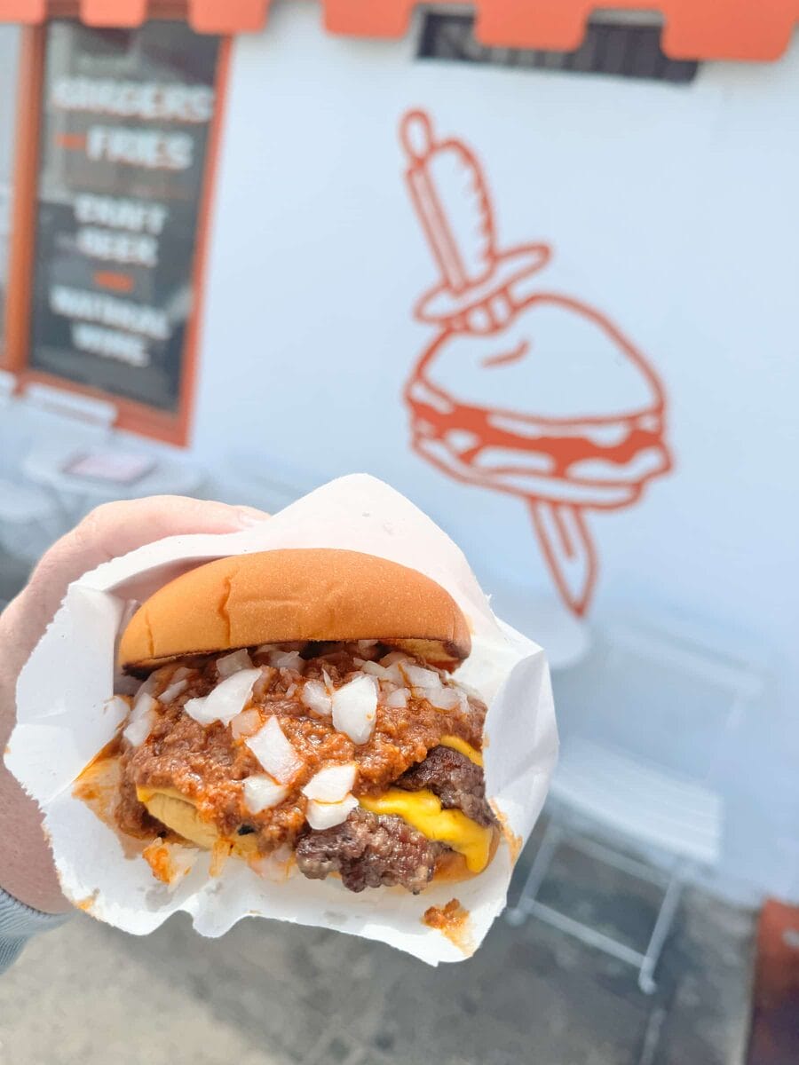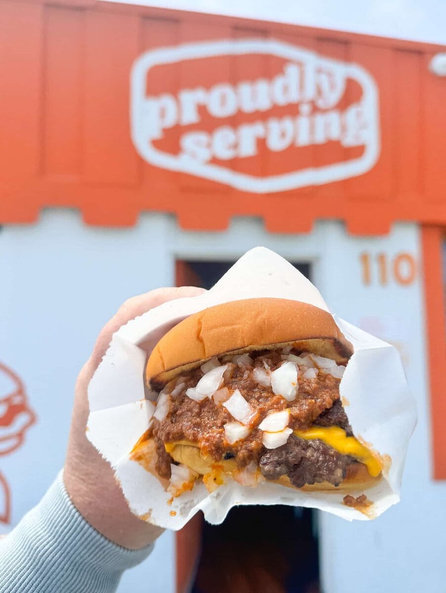 Located in Hermosa Beach, Proudly Serving is an adorable Los Angeles burger shack that serves craft beer and natural wines. After gaining major popularity as a pop-up, Proudly Serving has officially opened a brick-and-mortar eatery near the seaside. While you can’t go wrong with anything on the menu, the chili burger is an indulgent option that boasts two patties with cheese topped with Texas-style chili and chopped onions. The tots are extra crispy, but you can also match your burger with chili cheese tots. Don’t forget to order a side of pickled jalapeños for extra heat.