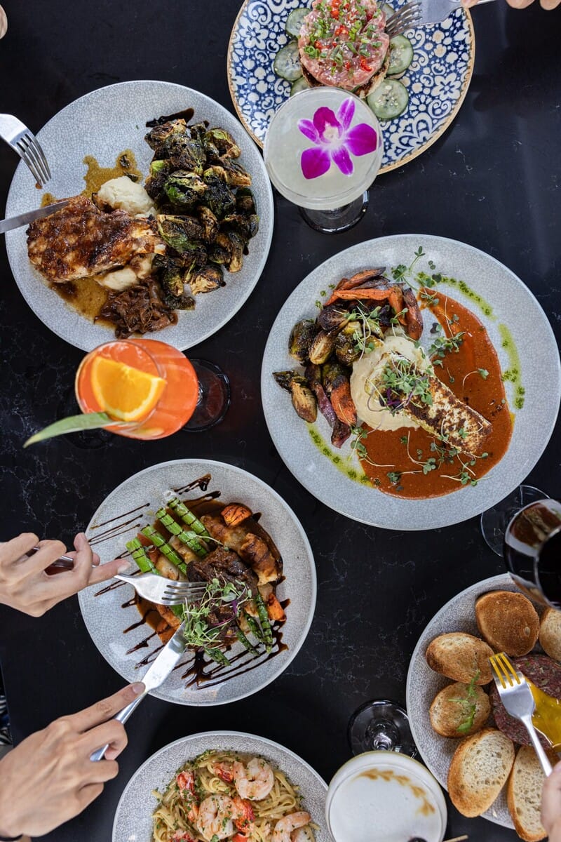 For Pacific Catch, it’s always the season of giving. This sustainable fish house partners with the Surfrider Foundation to support the world’s oceans and sustainably source their seafood. And while fresh fish may be what they’re known for, don’t miss out on Pacific Catch’s lineup of holiday cocktails! Trust us—it’s worth holding off on the morning peppermint mocha for their peppermint espresso martini. Their recently opened Tustin location has a laid-back vibe that’s reminiscent of a day at the dock. Rattan pendants hang over light-washed wood dining tables, and the blue-tiled bar is perfect for casual meet-ups during the holiday season.