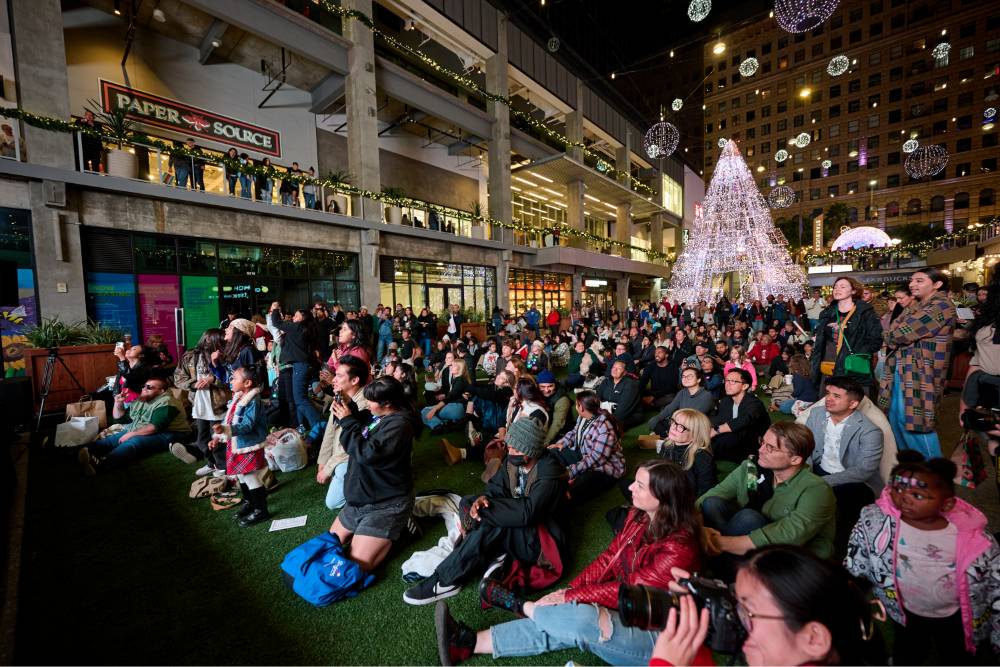 When the clock hits 5 p.m., prepare for the main attraction: Sparkle DTLA’s light show. Beginning Dec. 6, The Bloc courtyard becomes an ambitious animated display: 18 million lights choreographed to music, including a 32-foot tree and a 16-foot ornament tunnel. Each hour from roughly 5 p.m. to 9 p.m. you’ll catch a show that draws oohs, ahhs and photo ops galore. The grand debut celebration features appearances by Santa and the Grinch, along with family crafts and live performances by the Colburn Concert Choir. Singer Jillian Rossi is set to take the stage, electrifying the plaza with powerhouse vocals and pure holiday magic. Throughout the season the nightly spectacles mean you can return for Downtown LA winter events long after the first night.