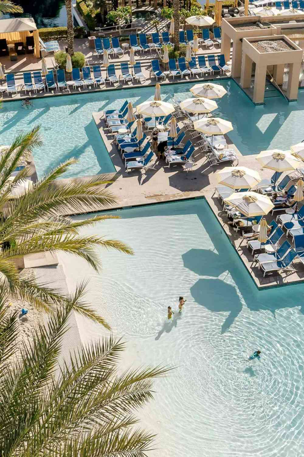 Forget standard hotel pools—Renaissance Esmeralda’s pool setup is next-level, boasting one of the largest resort pools in the Coachella Valley. Designed with families in mind, the signature pool features a beach-style entry, allowing little ones to wade safely while parents relax in the sun. Looking for a little extra luxury? Private beach cabanas are available for rent, providing shade, a TV, and a large chilled fruit platter. Enjoy a cooler with cold water, lounge seating, and prime poolside views. Whether splashing in the shallows or floating all day, this is the best way to enjoy the Indian Wells sunshine.