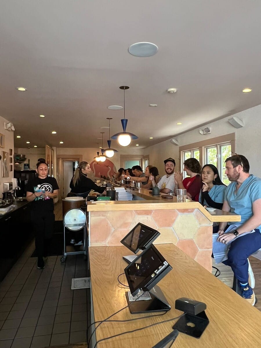 Between the cozy bistro tables and beautiful tiling, Barra Santos is one of the most beautiful and transportive restaurants in East LA. This Portuguese eatery takes no reservations, but it’s great for an early, post-work girl dinner during the week. The cheese of the day is always worth trying and is served alongside a seeded baguette. However, we recommend taking things up a notch with an order of Iberico ham on the side. If you’re a fan of seafood, add tuna crudo to the mix along with some fried whole sardines.