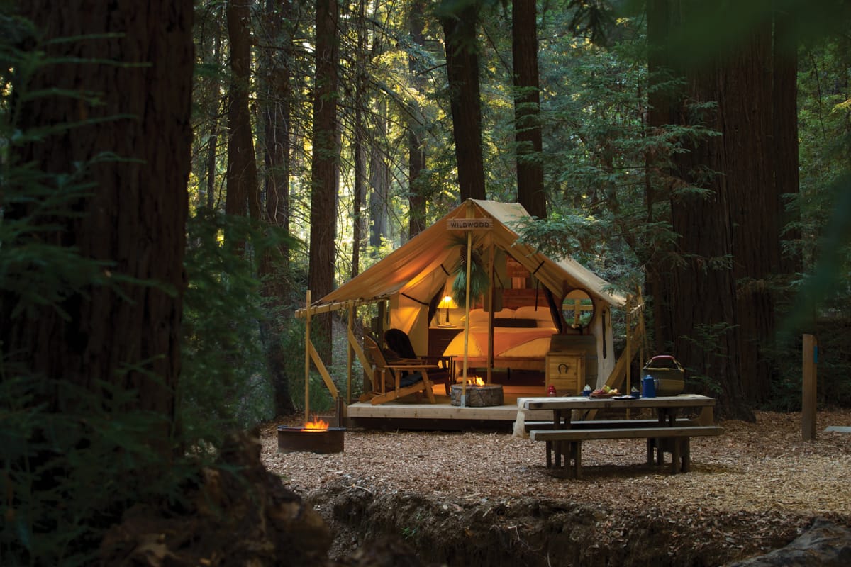 The stunning Ventana Big Sur resort, known for its deluxe, romantic property, also offers memorable camping and glamping experiences. Sleep beneath the redwoods in lavish tents equipped with a wood-burning fire pit on the deck. Explore the beauty of this coastal town, and then return to your dreamy campsite for relaxation paired with wine and s’mores!