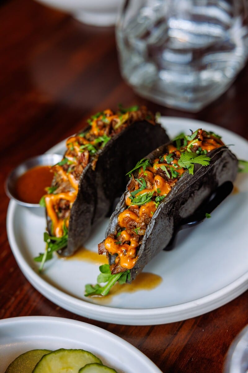 Mother Tongue is a jewel-toned restaurant on the fourth floor of LA’s swankiest fitness club, Heimat, but that doesn’t mean you need deep pockets to come here. Sure, they have Michael Mina’s reserve caviar for $125 per ounce during dinner, but Social Hour bites start at just $4, including a slider with truffle cheese. Try their spreads like the roasted beet hummus or toasted walnut muhammara for $5 each, which are all served with toasted flatbread. Complete the experience with $5 beers or $10 wines and cocktails—our pick is the passion fruit margarita.