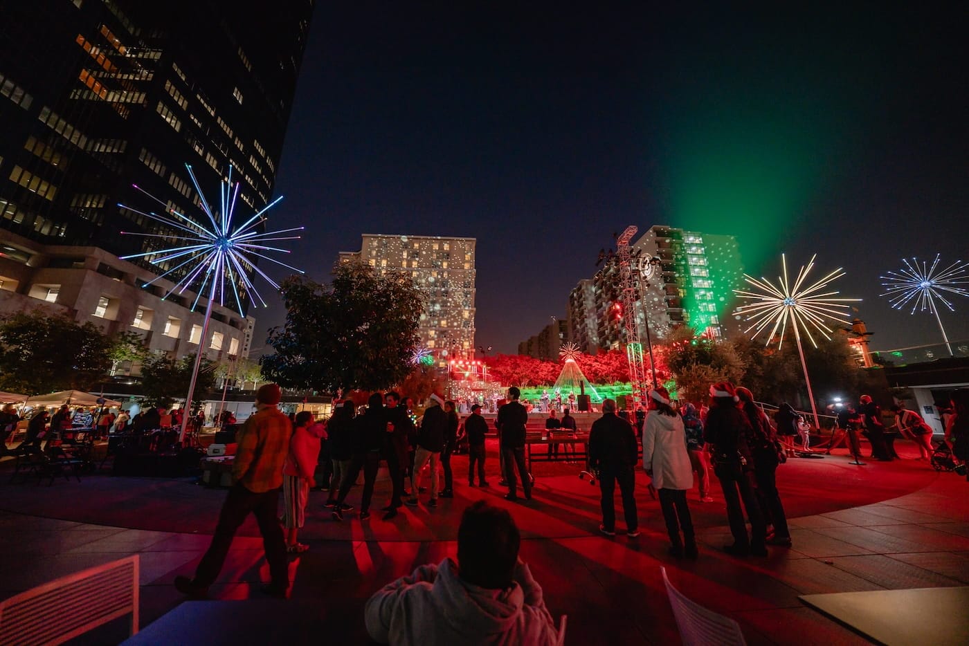 If twinkling lights and immersive art displays are your thing, the Grand Illuminations Lighting Display at The Yard at Cal Plaza is a must-see. This new addition to DTLA’s holiday scene, curated by local artist collective Liquid PXL, turns Cal Plaza into an electrifying world of colors, lights and art installations. Starting Dec. 4, a stunning 25-foot LED tree anchors this dreamy display, flanked by the magical Electric Dandelions and Lumiverse light columns that seem to hum with the season’s spirit. From dusk until 10 p.m. every night, these light shows dazzle visitors, adding holiday sparkle to the cityscape. Located near Grand Central Market and the Angels Flight Railway, this experience lets you see Downtown LA in a whole new, radiant light.