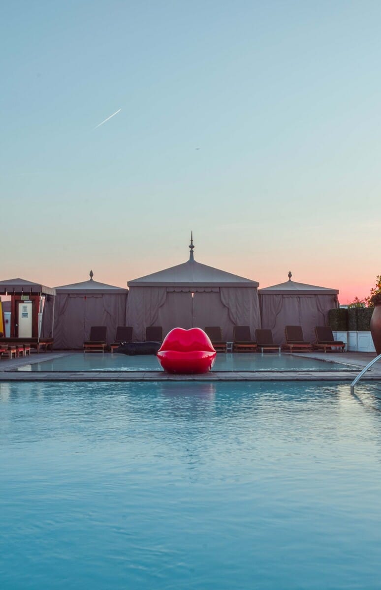 The rooftop pool at the SLS Hotel in Beverly Hills is as stylish as the rest of the hotel. Interspersed around the pool area are the same whimsical furnishings and sculptures that you’ll find downstairs.The pool area actually has two adjacent pools: a shallow one for wading and one that’s four-feet deep. The food menu is pretty extensive with shareable appetizers like arancini and entrees for one like spinach Carbonara pasta. Day pass and cabana rentals available via Resort Pass start at $50, and we’d recommend snatching one during one of their summer weekend DJ sessions.