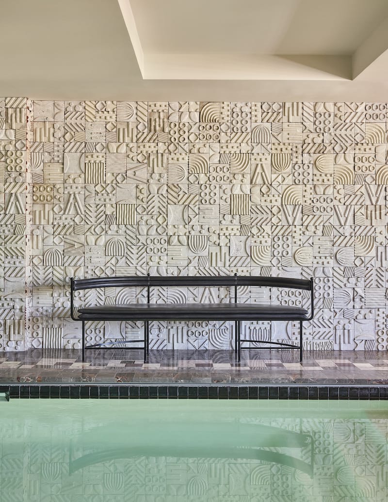 The DTLA Proper’s pool sits on a checkered monochromatic terrace just above the hotel’s rooftop restaurant, Cara Cara, and boasts an epic view of the skyline in all directions. There are no private cabanas to rent here, but there is poolside food and beverage service from Cara Cara’s seasonal menu. The chorizo and queso focaccia is easy to share and enjoy by the pool, but you can also head down to the fire pit for a quick meal before taking another dip. The pool is exclusive to hotel guests, but Cara Cara is open to the public.