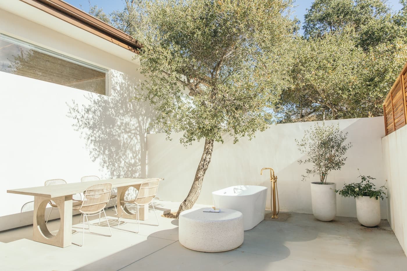 Accommodations at this Malibu resort redefine luxury, creating a warm, welcoming atmosphere without the usual formalities. Each space feels like a retreat, whether it’s the sprawling Estate Rooms, cozy bungalows, or secluded Premium Private Cottages. My own cottage was a private sanctuary. An outdoor shower sat beneath a towering tree, while a private courtyard featured a tub perfect for stargazing. Thoughtful details, like provided bath salts, made every soak feel indulgent. Inside, the living spaces were just as inviting. The cottage included a bedroom, two master baths, and a living room with an electric fireplace. Complimentary snacks and drinks added the perfect finishing touch.