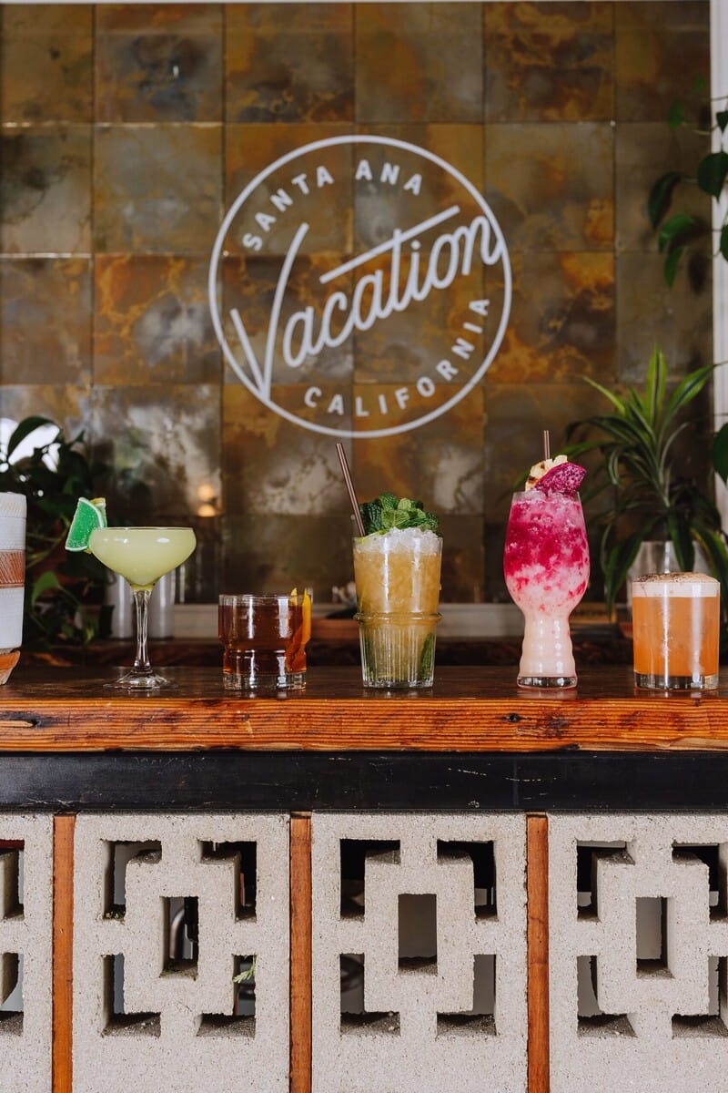 Transport yourself from stormy nights to warmer weather at Vacation Bar. This island-inspired speakeasy is marked by a glowing pink neon sign off of 4th Street in downtown Santa Ana. The dining room resembles the lobby of a five-star retro resort with vintage accents that nod to the building’s historic legacy. Vacation Bar is the place to dream of brighter days and summer getaways—and cocktails like The Surf Poncho help one do so. You can’t go wrong with a beverage that tastes like lime sour candy and a late-night pizza menu that always hits the spot.