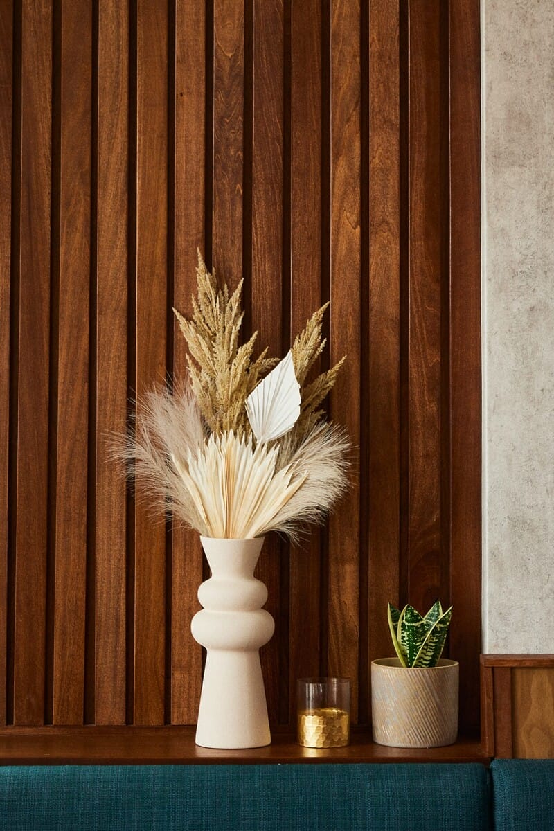 You’ll find lush materials, natural accents and rich tones of blue, camel and orangewood throughout the restaurant, all of which perfectly complement the panoramic ocean views. Brummett teamed up with his wife, Natalie, and contractor Mark Handian to create this ambience and keep it in line with his vision.