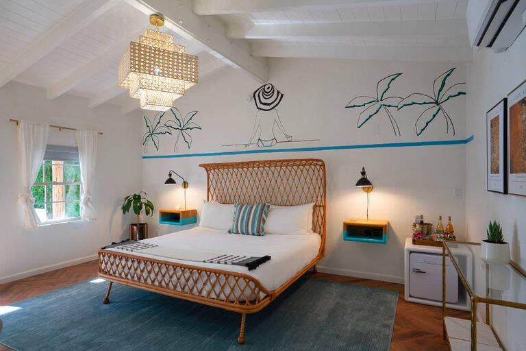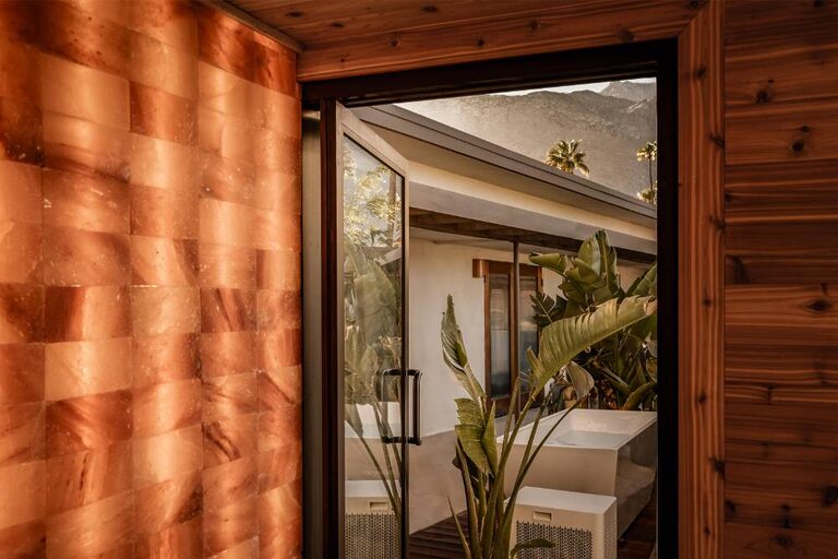 Terra Palm Springs reads like a desert retreat imagined by someone who actually meditates. The vibe is earthy, grounded and refreshingly unforced. Mornings unfold with guided meditations as the sun warms the mountains. Afternoons drift toward the pool, followed by time in the Himalayan salt sauna or cold plunge. Wellness here feels ritual-driven, and a raw juice appears at just the right moment. Even the rooms encourage better sleep through calming textures and intentional design. This boutique wellness hotel in Palm Springs attracts travelers who want their stay to feel intuitive. Less doing. More being. The desert handles the rest.