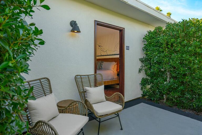 Sun-drenched and unpretentious, the pace feels immediately slower at Desert Paradise Resort Hotel. Set just outside Downtown Palm Springs, this adults-only retreat leans into reset travel through space, sunshine and simplicity. Days revolve around the pool, framed by palms and mountain views that remind you why the desert’s energy calms the nervous system. Suites are designed for lingering, with kitchenettes and private patios perfect for doing nothing. Wellness here is personal and unforced, rooted in comfort rather than programming. Among Palm Springs boutique hotels, Desert Paradise offers a relaxed take on modern wellness. It’s ideal for LGBTQIA travelers who want their desert reset to feel easy, quiet and genuinely restorative.