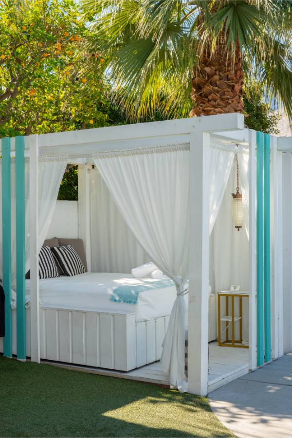 Lucille Palm Springs blends Old Hollywood glamour with modern wellness sensibility. The property feels intimate, elegant and refreshingly relaxed. Days revolve around the pool and private outdoor soaking tubs, where time slows naturally without an agenda. Private patios and a shared grassy lounge area create quiet corners for reading, reflection or an afternoon nap that feels well-earned. Wellness here comes from space, sunlight and unstructured time. This Palm Springs boutique hotel attracts travelers who want their vacations wrapped in style, simplicity and a sense of ease.