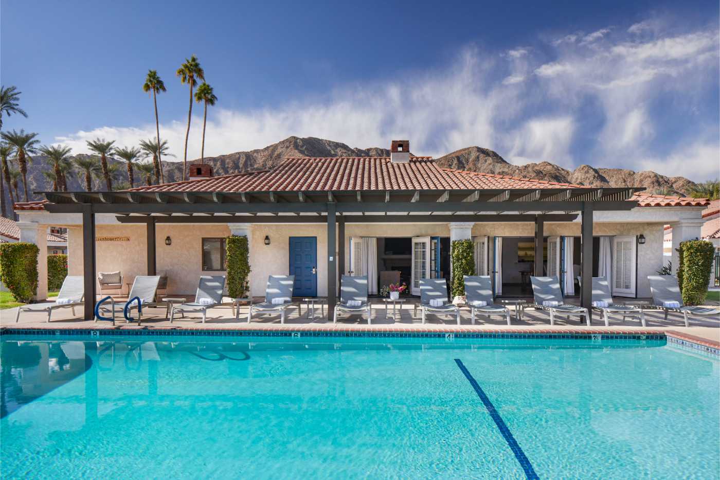 >Start your morning in a shaded lounge chair by this pool in Greater Palm Springs, iced coffee in hand, as the current carries you past tropical greenery. Need a conference call setup that impresses? </span>Sink into the 20-person spa (yes, really), or grab a spot on the expansive outdoor dining terrace with fire pits and a built-in BBQ.