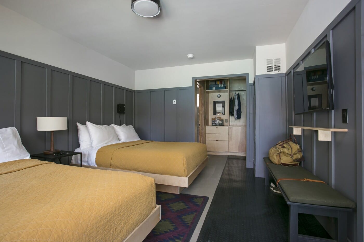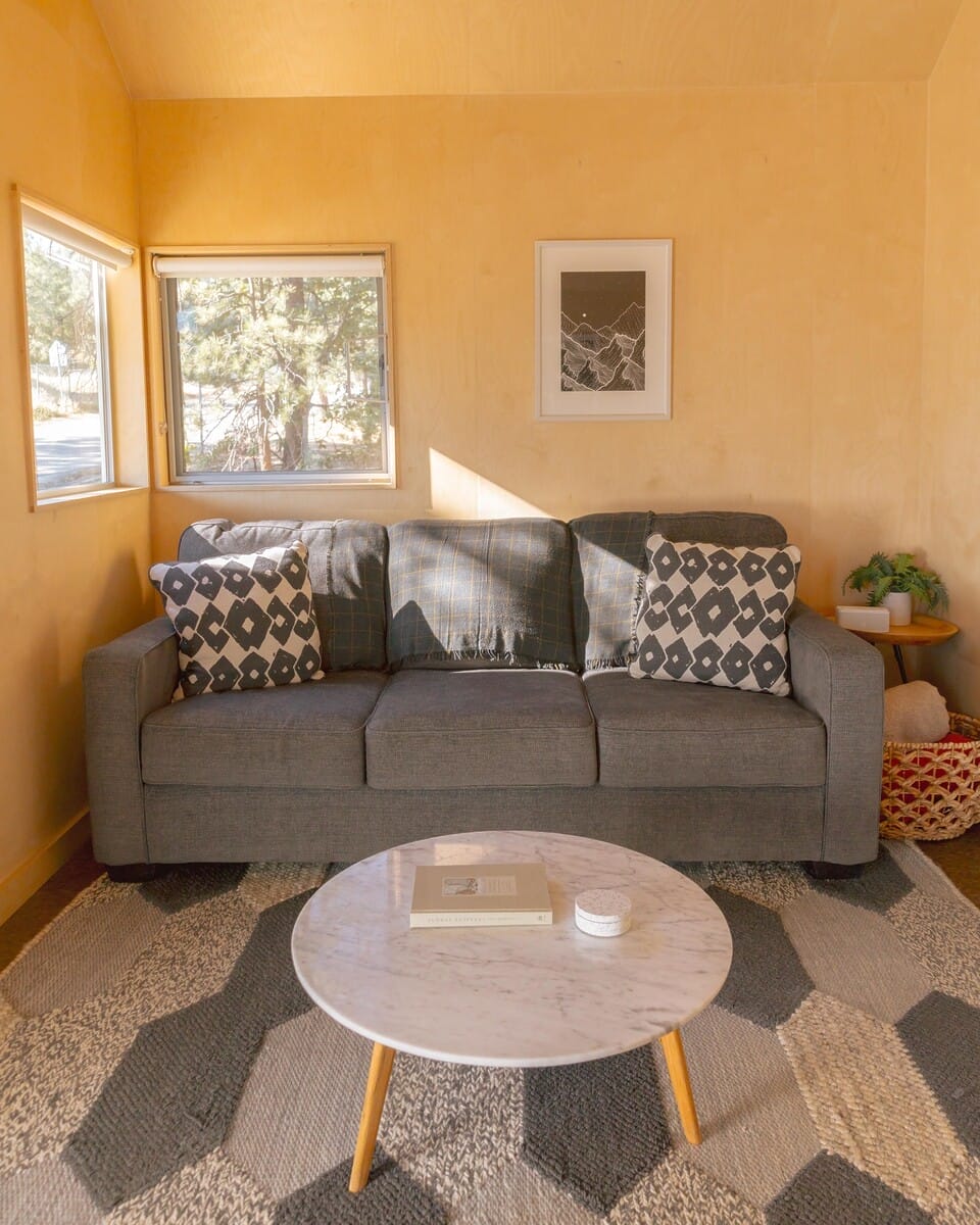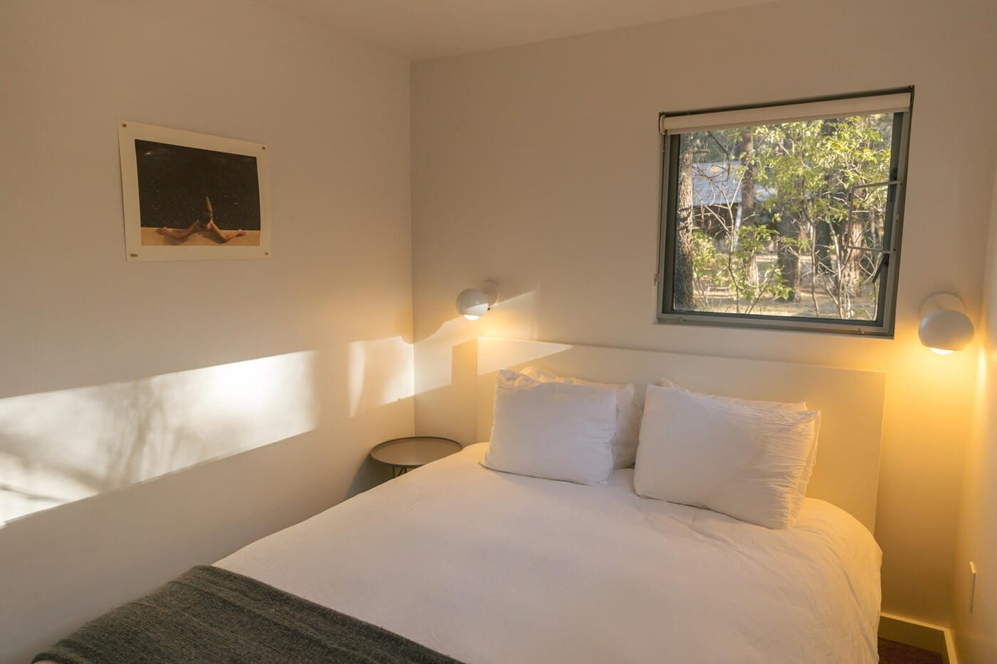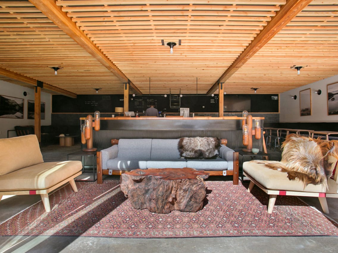 An ongoing experimental project in construction and design by a group of LA architects that explores how we spend time in nature, you can sleep among towering pine trees at Colorado Lodge, which is located in a quiet neighborhood that’s a 10-minute walk from both Snow Summit and Big Bear Village. The collection has six renovated Nordic-style cabins, including cozy one-bedroom Nocturnal Beauty and The Place Beyond The Pines (perfect for two), each featuring minimalist Baltic Birch lined interiors. The newest addition, C4, has a full modern kitchen and a clawfoot soaking tub in the primary suite. Amenities are basic (no bar or restaurant), although there is a communal hot tub.