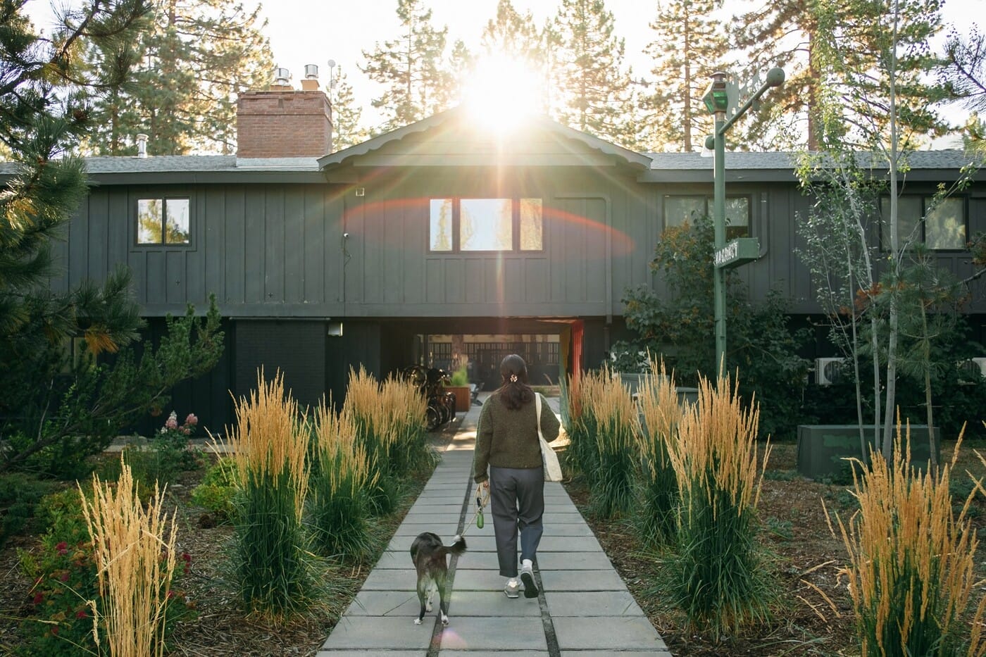 Located blocks from the beach and Heavenly Mountain, this reimagined 1960s-era motel has it all: Insta-friendly interiors, mod cons, plus free parking and a mini gym with Pelotons. Rooms range from one-bedroom suites to a honeymoon king (with a vintage heart-shaped tub) and come kitted out with Apple TVs and mini fridges. Some are pet-friendly too. The reception area doubles as a coffee/hot chocolate bar and happy hour spot, and while there’s a small complimentary breakfast menu (pro tip: order the waffles), there are plenty of places to eat within walking distance. There’s also a hot tub and fire pits to get cozy while toasting s’mores and meeting fellow guests.