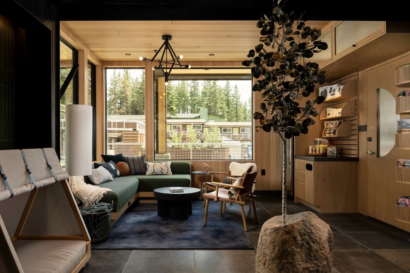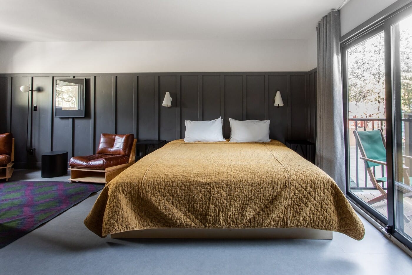 Nestled in the heart of the San Bernardino National Forest, Noble + Proper is a boutique all-cabin stay moments from Snow Summit and Bear Mountain ski resorts. An irresistible choice for travelers seeking a slightly secluded hideaway, the aesthetic leans modern-mountain with plenty of cozy communal spaces and Instagram-worthy nooks to unwind after a day on the slopes. Each of the eight standalone and superbly decorated cabins are named after the owner’s grandparents and feature nice-to-haves like complimentary coffee and Parachute Home linens. Kitchenettes are perfect for making drinks and simple snacks, but the lake and village are just minutes away by car for supplies and more substantial meals.