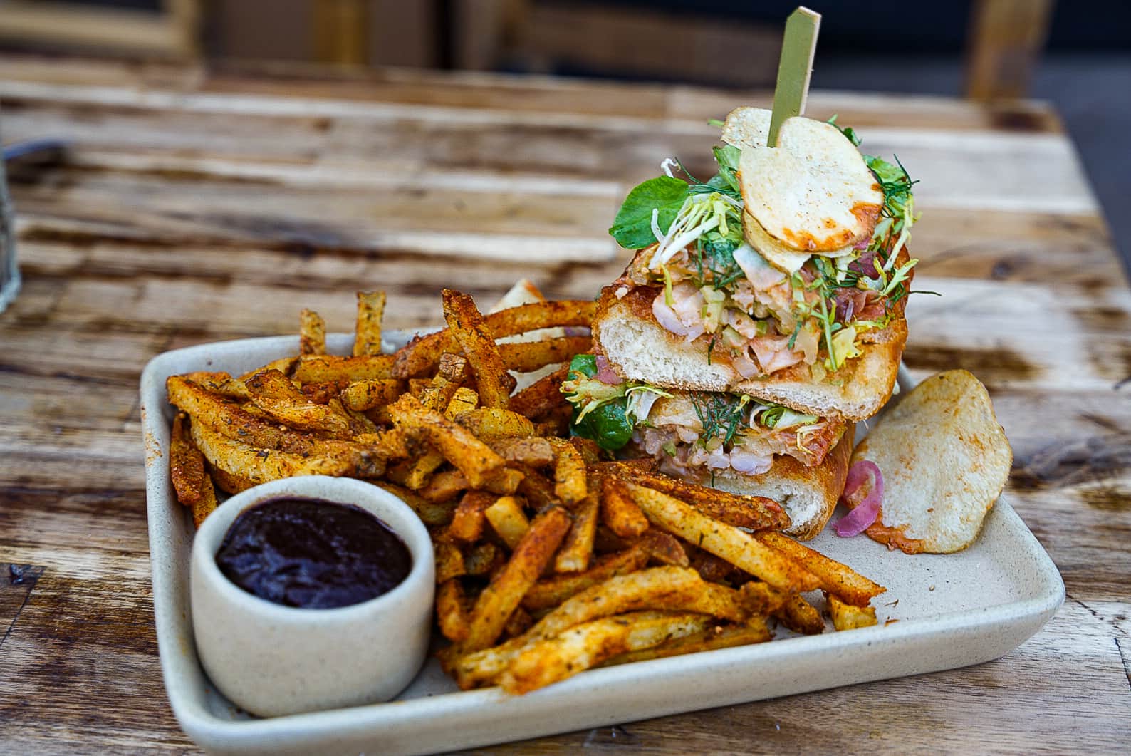 Of course, no meal is complete without the right pour. The Market’s craft cocktail menu holds its own, offering unique sips like the Cynar Julep (grapefruit, mint and cynar) and the Barrel Aged Mezcal Negroni, where agave meets chocolate and orange bitters. And soon, brunch lovers will have even more to love. Think crème brûlée French toast, eggs Benedict and Dungeness crab Louie cups. There’s also housemade Scarlett beet hummus and lemon curd-topped rustic toast.