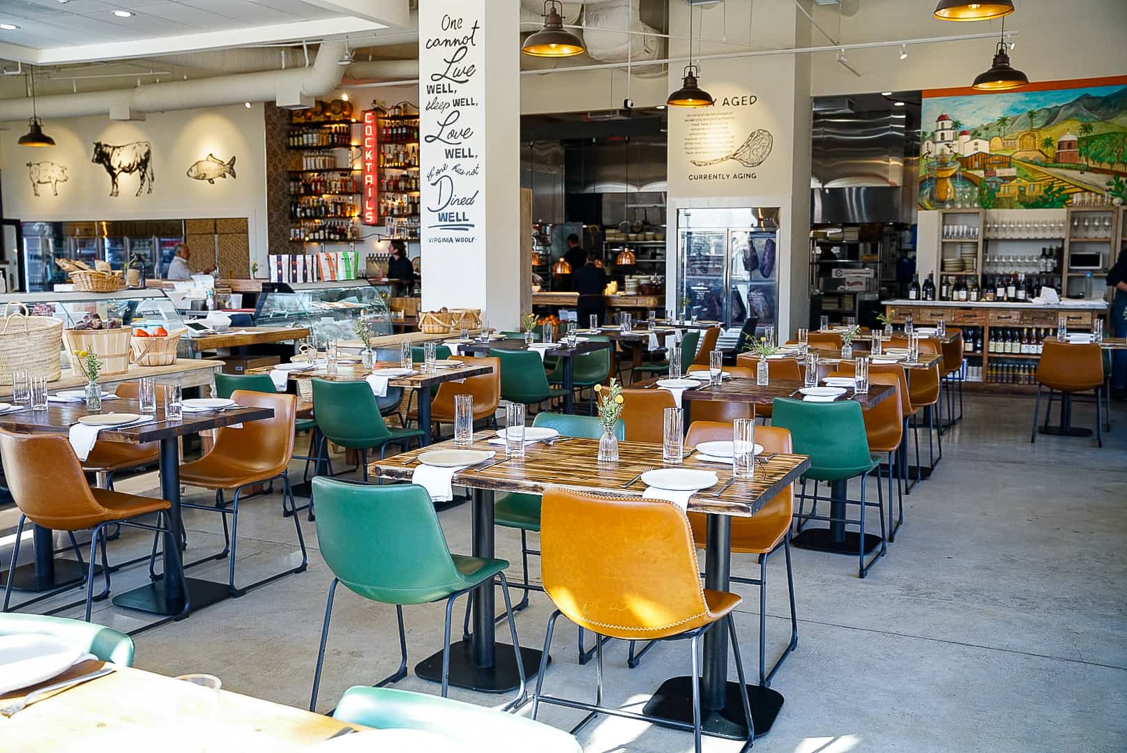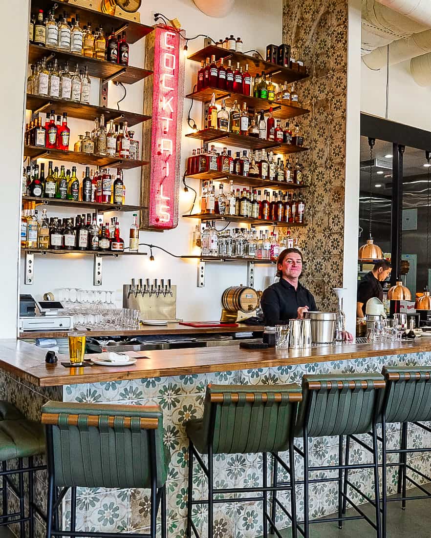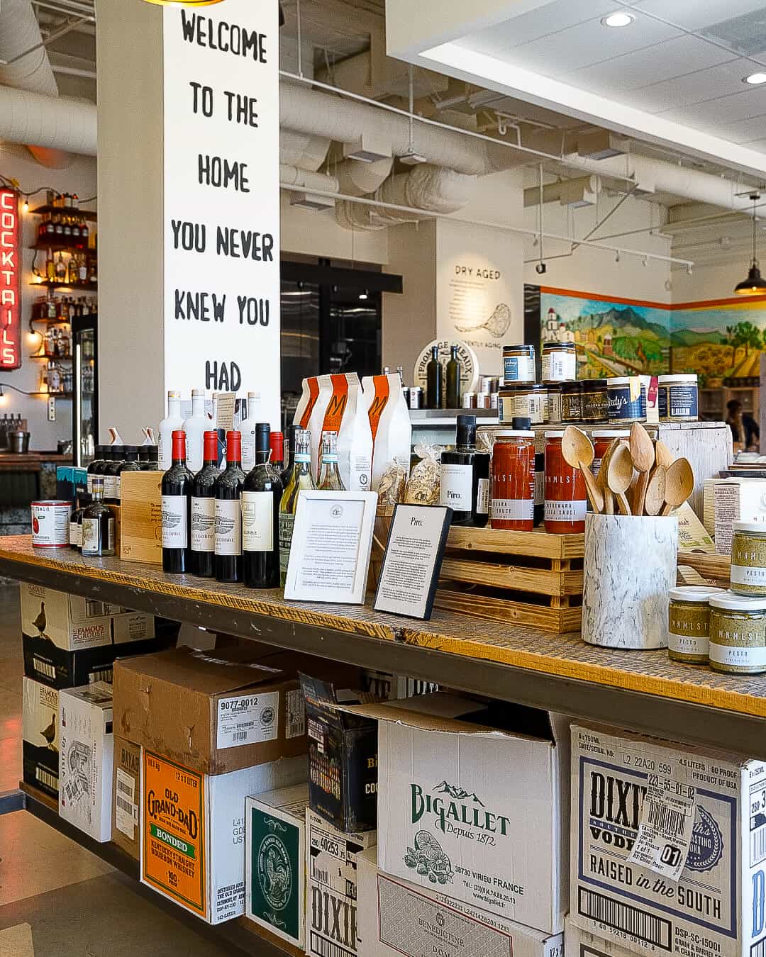 For the Villegas, this space is personal. It’s a place where friends and family gather, learn and connect. Whether it’s discovering a new cooking technique from the butcher, picking up a unique kitchen gadget or simply lingering over a meal with loved ones, every detail in this San Juan Capistrano restaurant tells a story. From the custom mural featuring the family’s boat and the town’s iconic swallows to the 1860s French baking table that survived a Texas flood, history is woven into every inch of the space. Even the retro “Cocktail” sign—which once hung on the Venice Boardwalk in the 1950s—carries a piece of nostalgia. These details make this new River Street Marketplace destination a must-visit.