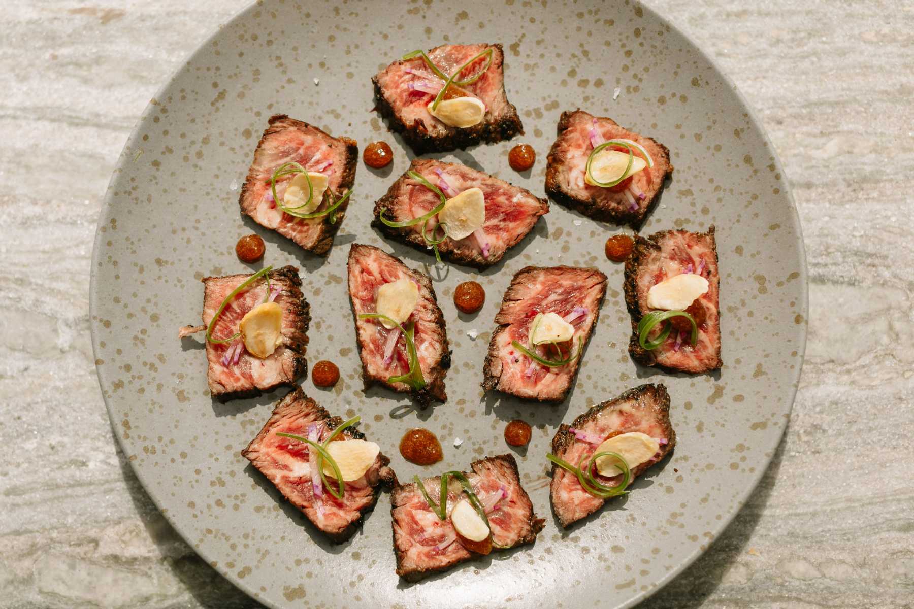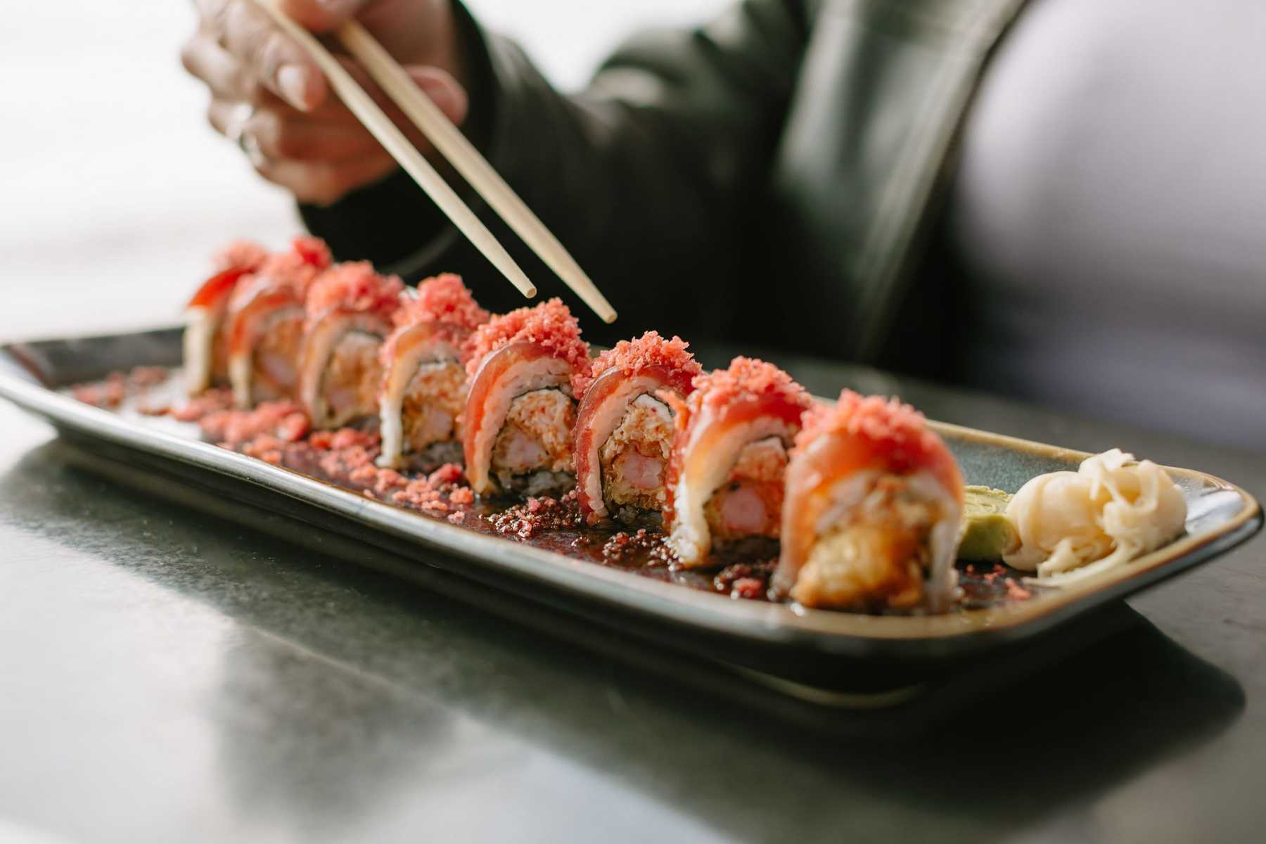 Even the drink menu tips its hat to the East with a splash of Asian spices and flavors. We recommend the Smoke & Mirrors libation—a concoction of mezcal, tequila, orange liqueur, yuzu syrup and togarashi. One sip and you’ll be transported to a beach bar in Okinawa. And if you’re feeling especially ambitious, top off your dinner with a dessert drink like the Hot Matcha Gotcha. This whiskey-forward drink is accented with miso and matcha for a unique flavor profile that any match connoisseur will love.