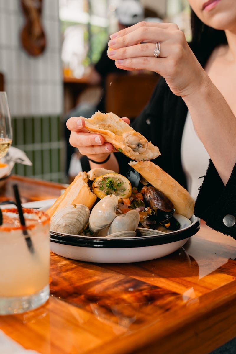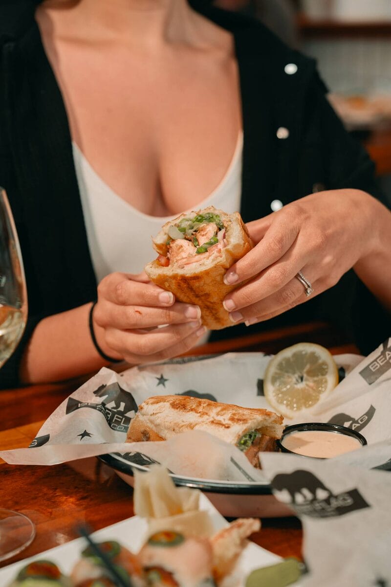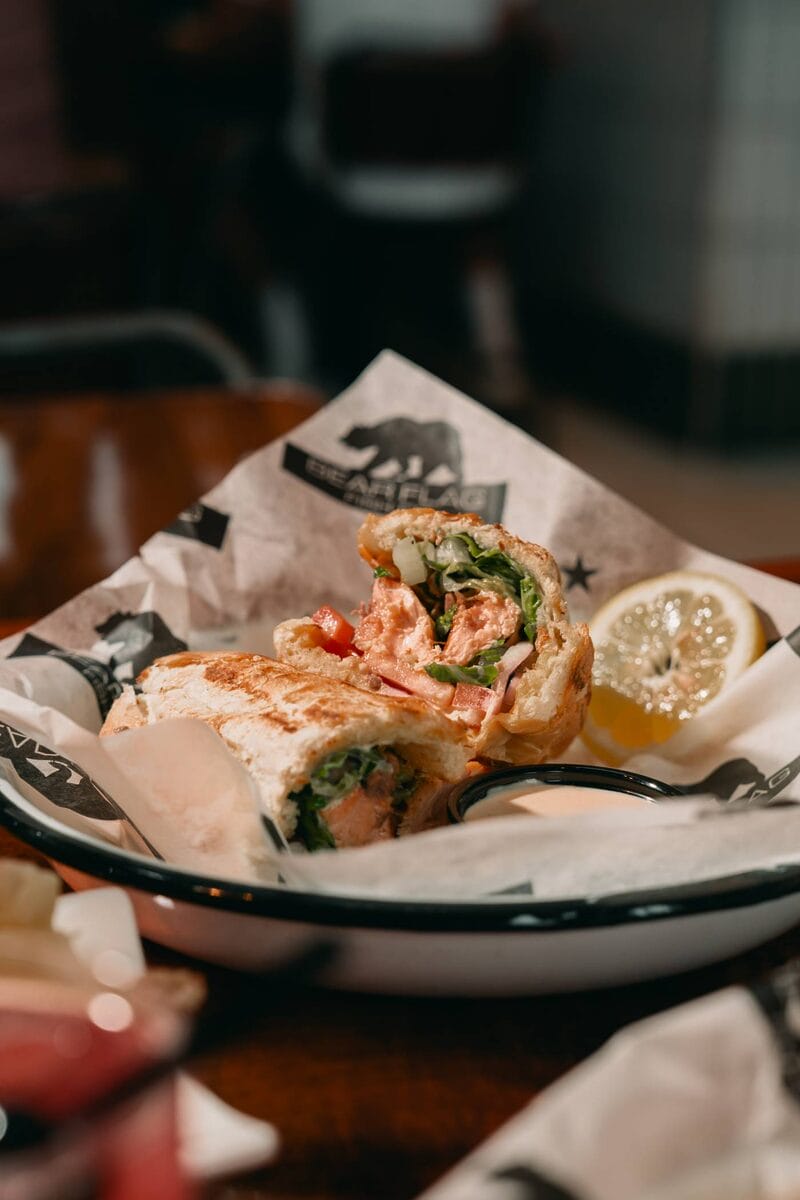 The Grilled Seafood Sandwich features fresh fish grilled sandwiched between a fresh baguette from local bakery C’est Si Bon. Add some lettuce, tomato, onion and a dash of their creamy, spicy Tommy sauce, and you’ve got a drool-worthy delight! This sando is the perfect platform to showcase the authentic, fresh flavors of Bear Flag’s award-winning seafood, combining simple ingredients to create something truly unique. And while the sandwich works with almost every fish selection in their market, the mahi-mahi is our go-to. It features extra Tommy Sauce on the side, of course, for a decadent kick.