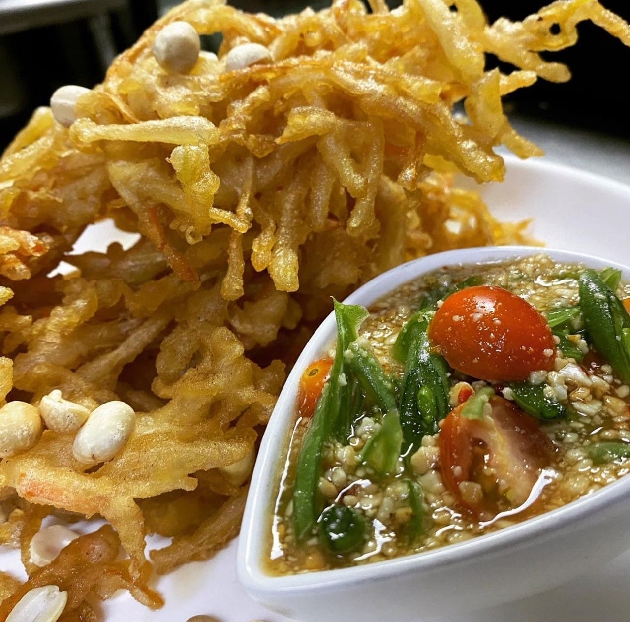 One of the oldest Thai restaurants in Silver Lake, The Silverlake House, previously known as Leela Thai restaurant, is welcoming at first glance. The friendly yellow sign, wood facade and well-lit patio emphasize the home-style cooking that Chef Kong features here. Drop in for their lunch special—a veggie spring roll, soup or salad, choice of rice and entree, starting at $11.95—or choose from their all-day and vegan menus. After ordering the drunken dumplings and kao soi, you may feel tempted to look around for your robe and slippers—because this place is that cozy.