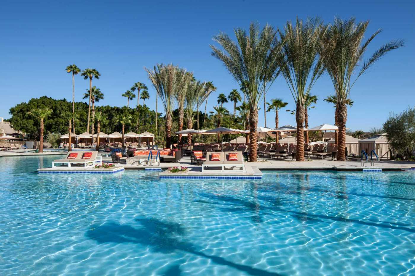 The Phoenician’s pool scene is legendary for a reason. Anchored by a massive multi-tiered pool complex with fire pits, waterfalls and sweeping mountain views, it’s equal parts resort elegance and desert fantasy. During Legendary Summers, the vibe shifts into nostalgic territory, with retro energy that channels the spirit of Old Hollywood vacations and 1950s Americana.