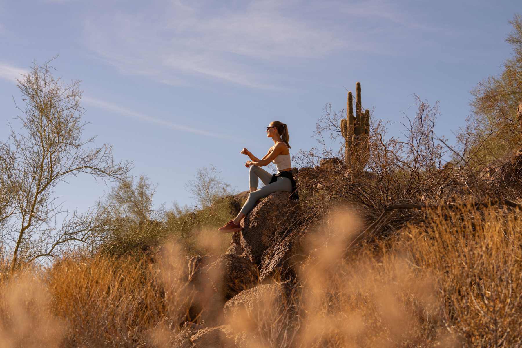 Start your morning slow. Whether you’re waking up in a Canyon Suite or a poolside casita, the light here has its own rhythm — soft, golden, unhurried. Order room service (we recommend the Sonoran Benedict), or take your first steps of the day through the property’s desert gardens, watching hummingbirds skim across the sky.
