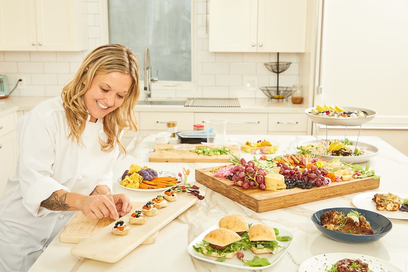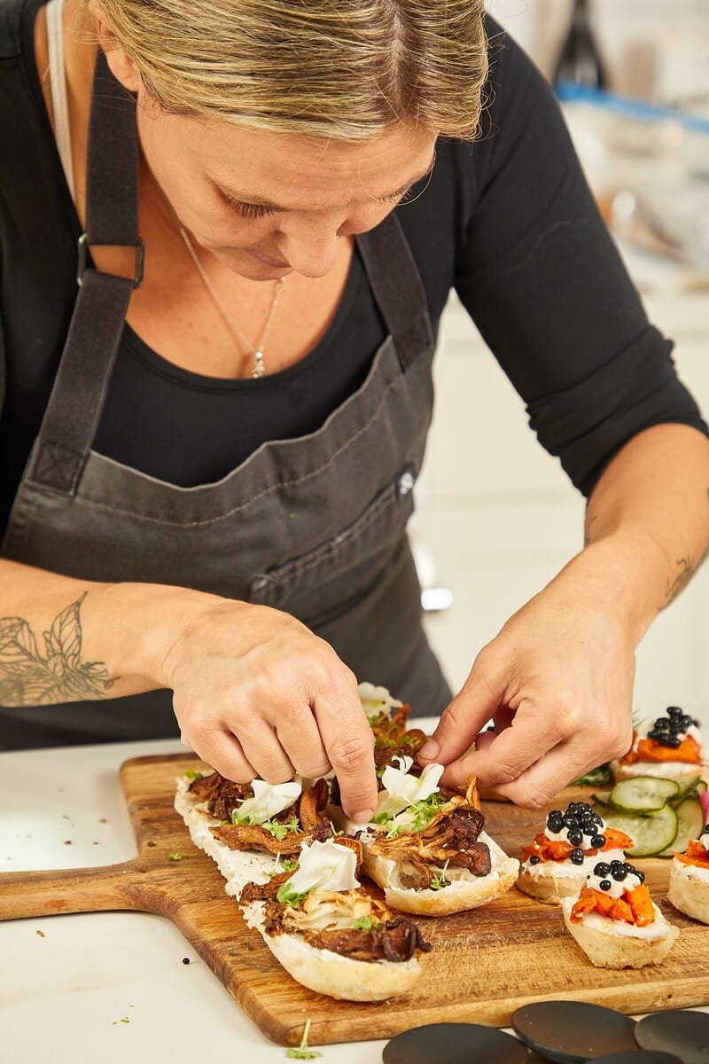 Plant and Seed is not just for the vegans; Chef Eileen actually isn’t targeting vegans at all with her plant-based parties. “I always joke that I am a vegan chef for the meat eaters, because I create food that appeals to them,” she shares. With a sleight of hand, Eileen conceals non-traditional ingredients in her menu selections, which don’t shy away from umami-forward flavors. Each dish is intentionally named after the ingredient it replicates, like Chicken Dijon and Seared Sea Scallops, rather than the veggie they are made with. This is one of the tactics Plant and Seed employs to show that eating vegan doesn’t have to come at a sacrifice.