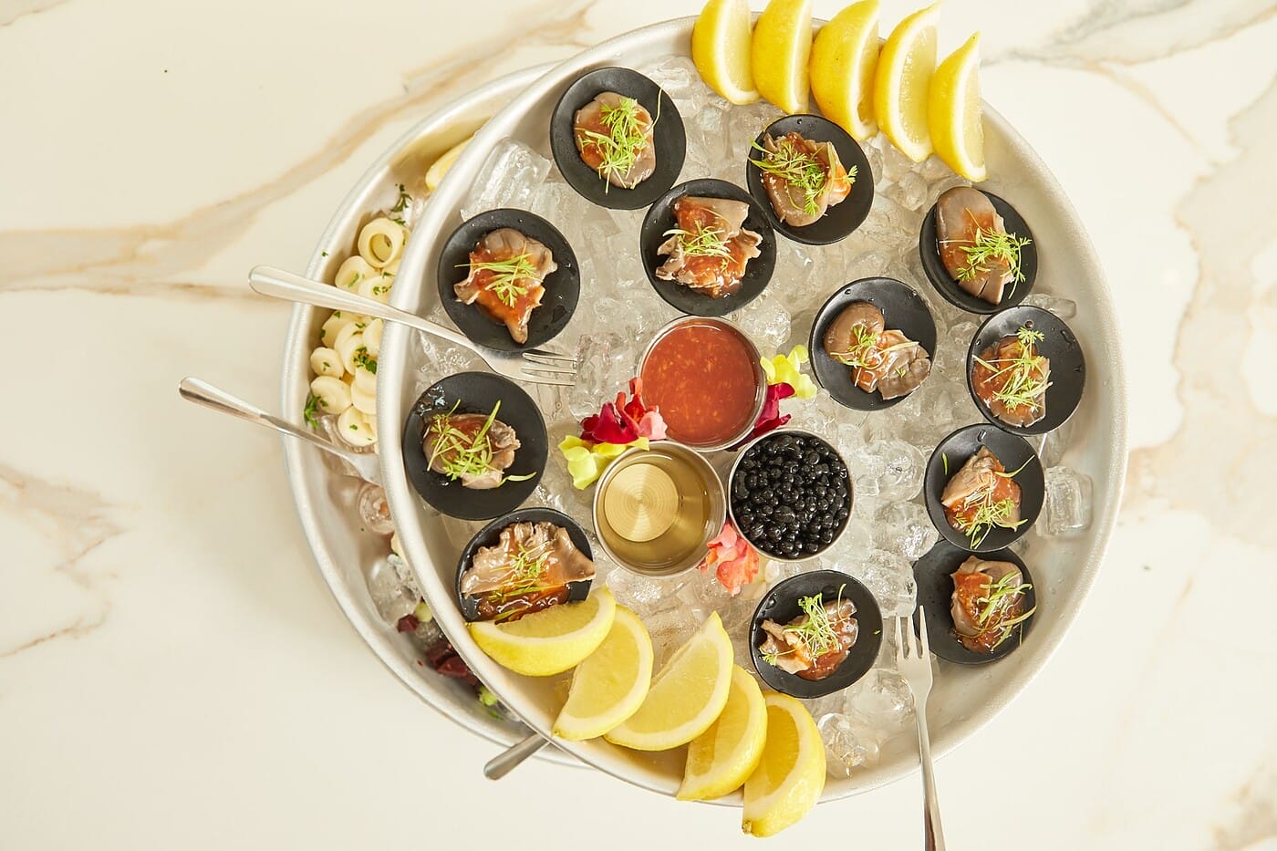 Plant and Seed’s fall menu highlights the bounty of the season with comforting dishes like rustic Kale and Garlic Ravioli dressed in a decadent sage cream sauce. There are also elevated options like plant-based Black Pearl Caviar. And no event is complete without dessert. Plant and Seed’s Chocolate Mousse is light and airy with rich cocoa and a tart blackberry puree to top it off. You’ll definitely want to order some extra!