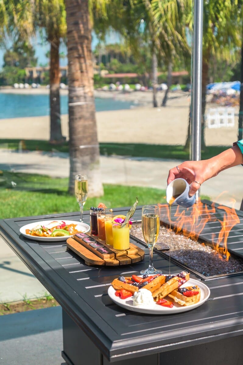 Looking for brunch bites and an unobstructed view of Mission Bay? Snag a table at Bahia Resort’s Dockside 1953. This nautical-inspired restaurant sits practically on the sand and features a beautiful patio with cozy fire pits. Menu highlights include baked crab cakes, coconut snapper ceviche ceviche and a seafood tower that’ll take your breath away. Pair your sea-to-table bites with an imported beer or craft cocktail. We suggest the Bahia Mai Tai for a tropical twist to your evening. With live music, weekly specials and seating just steps from the shore, this waterfront San Diego restaurant offers a true taste of the good life.