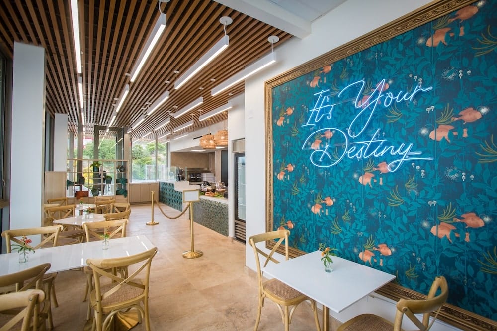 Dining at Destiny Coast is like watching a screensaver come to life (but better, because there’s burrata involved). This chic coastal restaurant sits right above the cliffs, offering panoramic views of the cove and a menu that mixes global flair with West Coast ingredients. The space feels breezy and curated, with pops of terrazzo and soft ocean hues. Start with the tropical radiance smoothie, then move into shakshuka, mahi & meyer lemon or coastal chickpea and salmon. It’s the type of meal that slows you down in the best way. For romantic waterfront dining in La Jolla, Destiny Coast delivers the main character moment you’ve been waiting for.