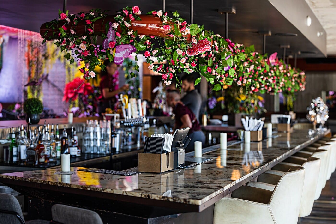Indecisive drinkers, rejoice—if you love gin, the Rye Almondine at Rare Society will send you straight to cocktail heaven. This cozy mix of rye whiskey and sloe gin gets warmth from pimento dram, cinnamon, clove, orgeat, and lime. Pair it with the creamsicle cheesecake, a rich dessert topped with almonds, for the ultimate almond-lover’s night out.