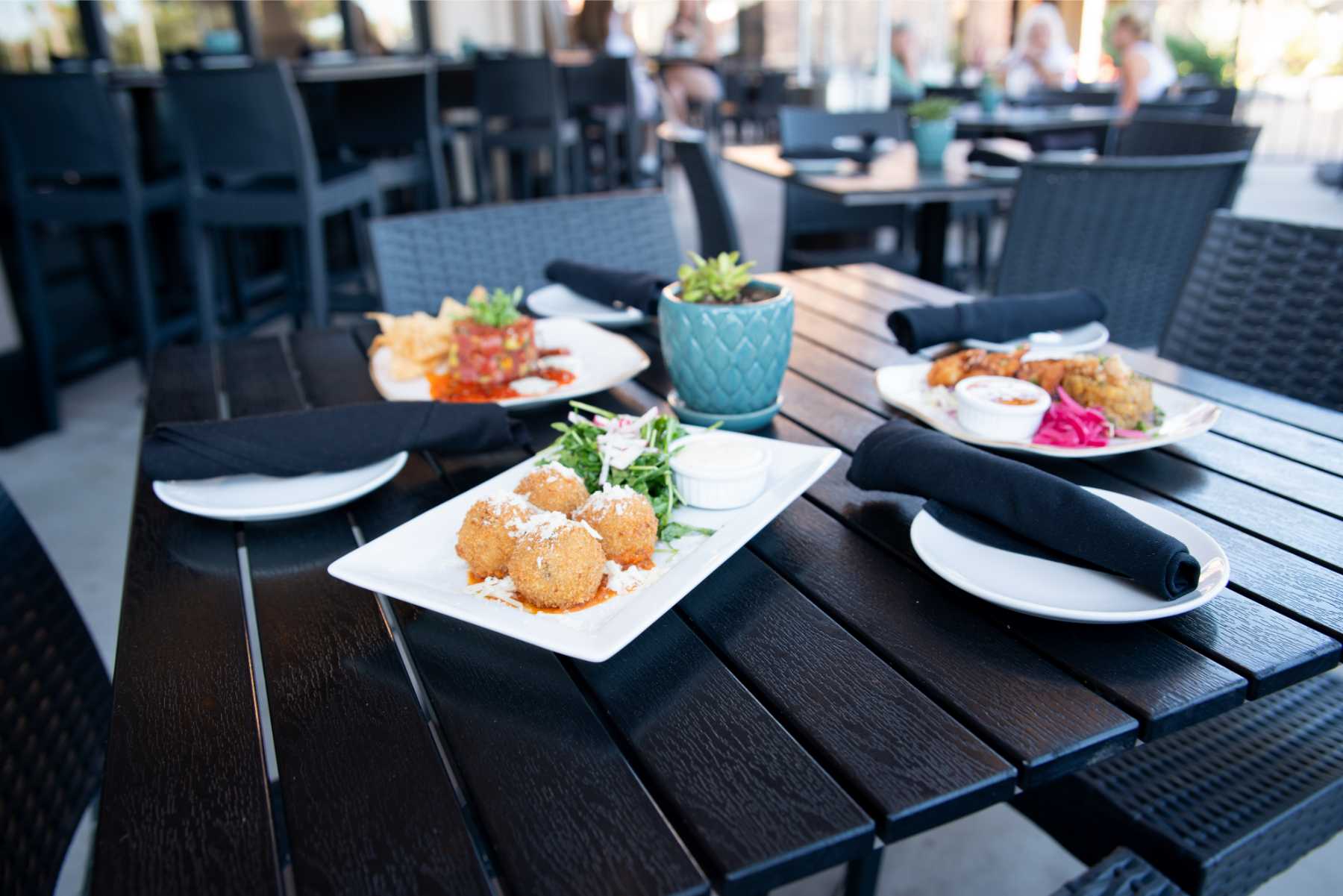Treat yourself to a steak and sushi dinner at SLATE Steak, Sushi and Cocktails. Request a table on the cozy patio around the fire pit and kick things off with the Cadillac Margarita or Grey Goose martini. For starters, you can’t go wrong with the calamari and shrimp duet and tempura cauliflower. Though the cooked dishes are delicious, SLATE is best known for its sushi, all of which is incredibly fresh and high-quality. Order an array of nigiri and sashimi hamachi, along with the Malibu roll and crispy tuna. Those who like a little spice should also order the firecracker roll.