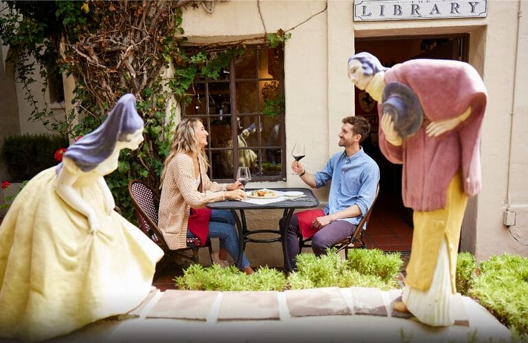 Carmel has a way of making every sip and bite feel like part of the journey. With more than 60 restaurants and 18 tasting rooms tucked into its one-square-mile village, itās easy to wander from glass to plate without ever needing a car. The Carmel Wine Walk is the best introduction, where there are many stops like Galante Vineyards, where Jack Galante, great-grandson of Carmelās founder James Devendorf, welcomes visitors. Other stops include Chalone Vineyard, known for estate-grown Chardonnay and Pinot Noir rooted in rare limestone soils. Each tasting room feels personal, often with the winemaker behind the bar.