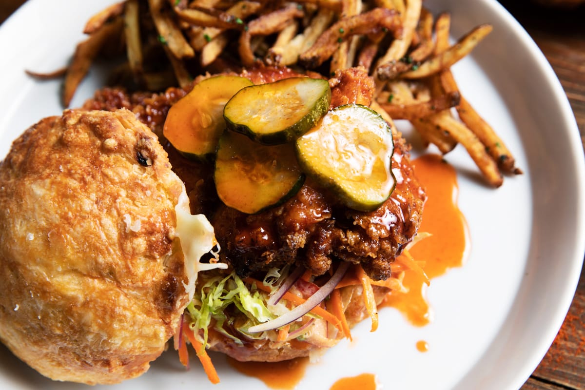 Southern food is known for its food coma-inducing effects and heartiness, and while you may need a nap afterward, you’ll be dreaming of flavors that remind you of your family’s kitchen. This rings true for Craft House’s Knife + Fork Spicy Fried Chicken Sandwich, which never fails to capture the attention of many. Because of its large size and crumbling biscuits, the knife and fork aspect was implemented for a ‘cleaner’ eating experience.