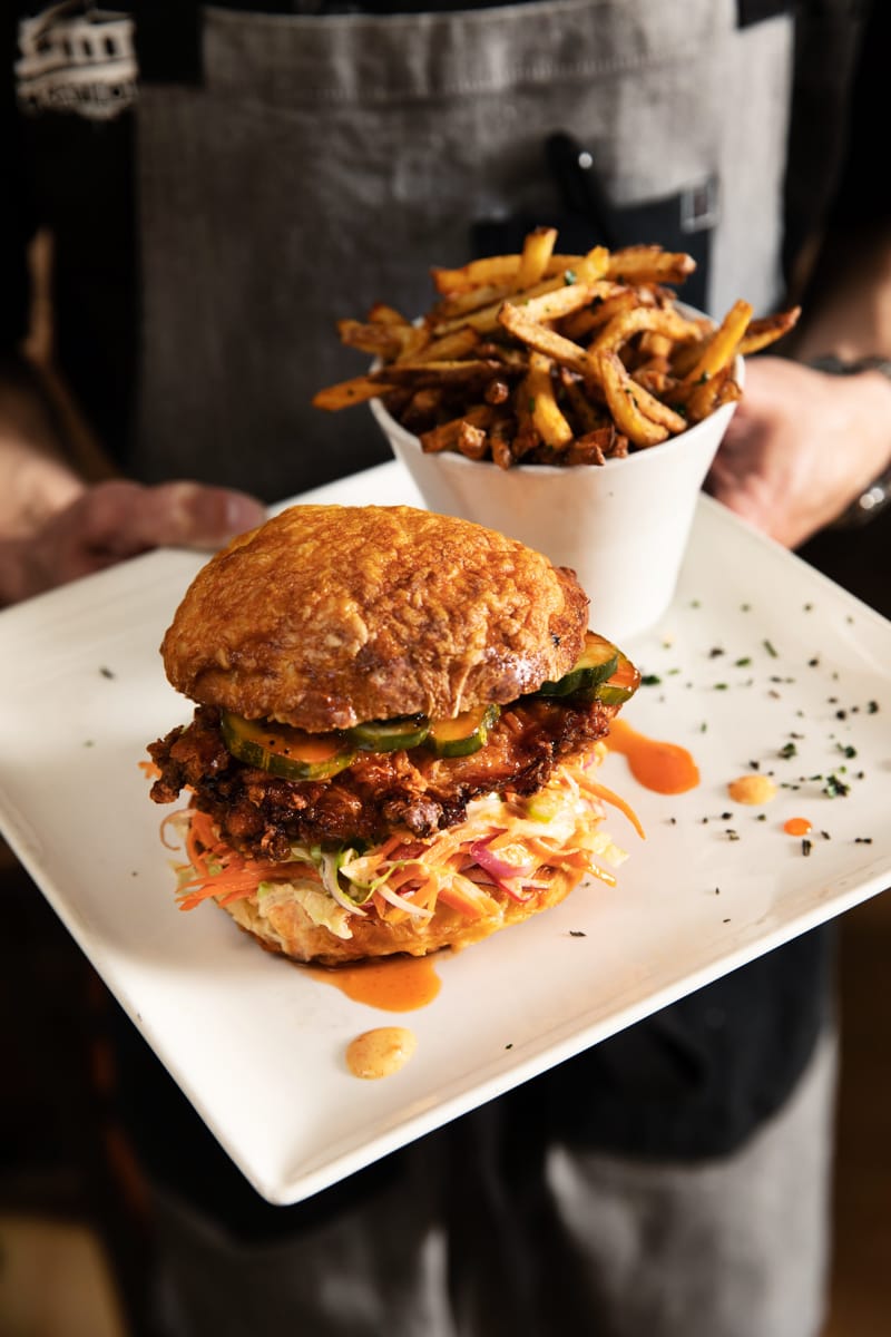 When asked about how the ‘Knife + Fork’ Spicy Fried Chicken Sandwich came about, Chef Mellgren explained, “A chicken sandwich is what I love to eat… It’s the simplest dish that hits all the little flavor notes on your palate.”