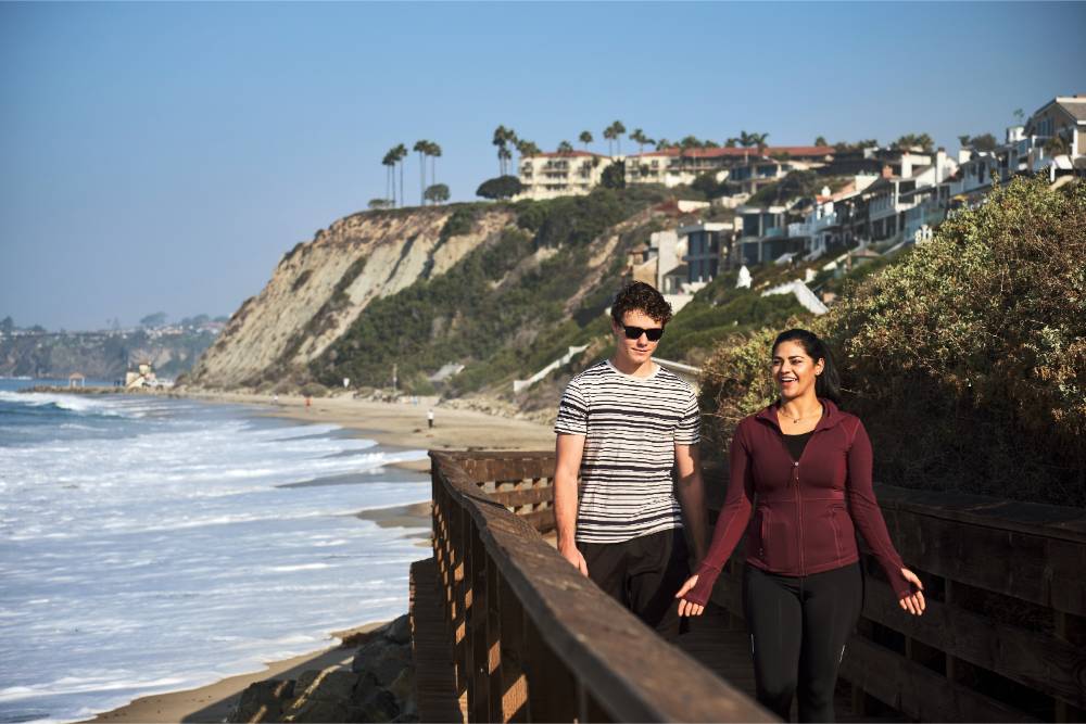 Check into your pick, whether it’s the Laguna Cliffs Marriott Resort & Spa with spacious rooms and pet‑friendly policy (yes, bowls and room space for your pup are included), the charming Blue Lantern Inn nestled in a quiet neighborhood with dogs welcomed warmly or the elegant Waldorf Astoria Monarch Beach for a luxe treat with a neighboring golf course and gentle walking trails nearby.