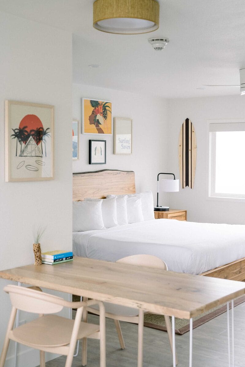 Wedged beneath the eclectic art galleries of downtown Laguna Beach, SCP Seven4One embraces an artsy yet modern edge. Vibrant greenery covers the exterior of this eco-contemporary oasis, while the central open-air atrium and oceanview patio capitalize on the alluring nature of this beach town. Coastal textiles melt onto the minimalist canvas of each guest room, while sound machines, essential oil diffusers and organic, regional-sourced bedding treat guests to a soulful and revitalizing retreat. Plus, guests can enjoy amenities like pool access and beach chair set-up at sister property Laguna Surf Lodge by SCP Hotels, all while enjoying the quiet and intimate setting at SCP Seven4One.