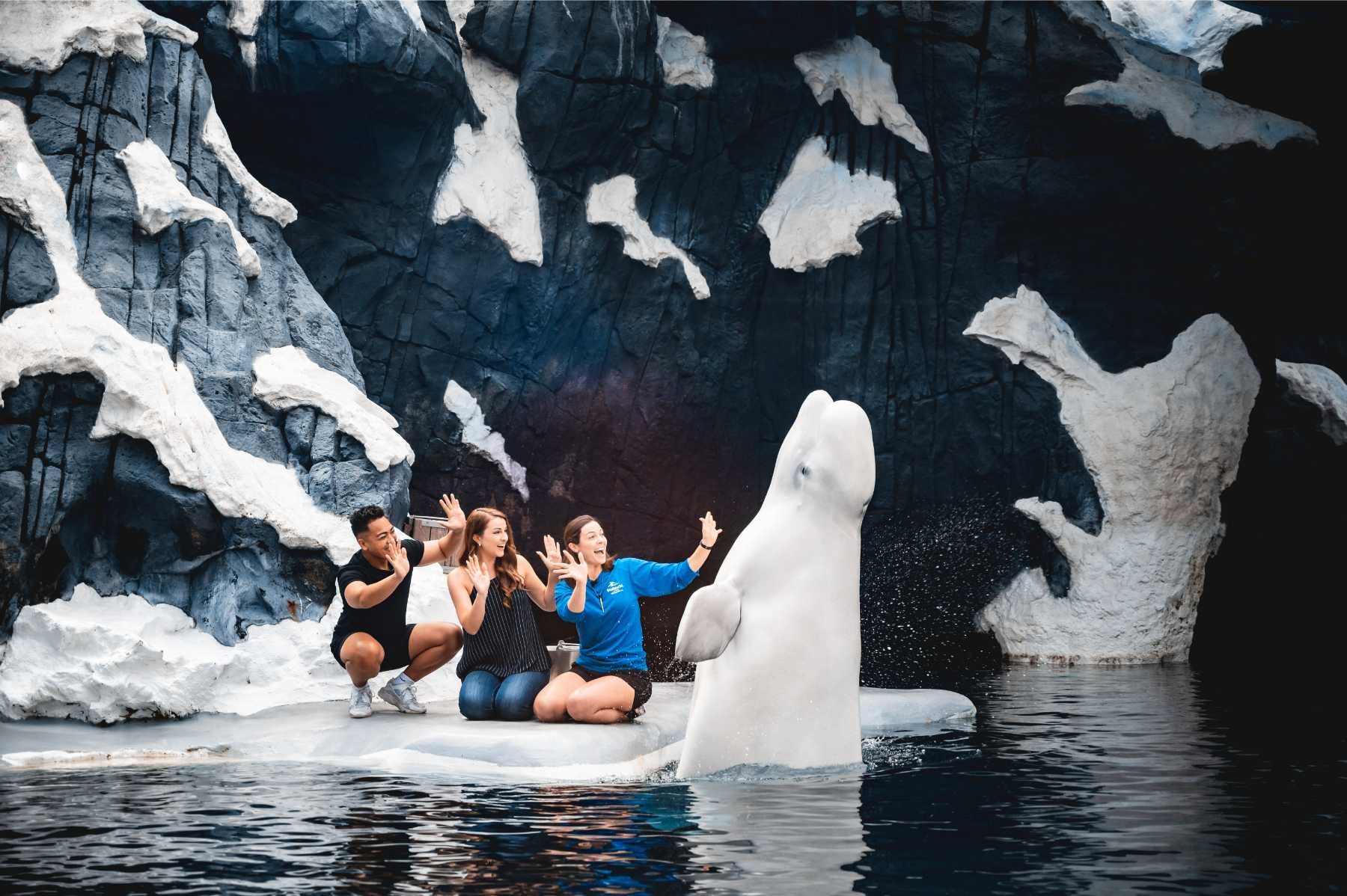 If you’re a fan of feathered friends, the Penguin Up-Close Encounter offers an Antarctic-inspired adventure. You get to step inside their chilly habitat and watch these adorable tuxedo-clad birds waddle, dive and swim. And for those looking to see beluga whales–don’t miss the Beluga Up-Close Encounter. It takes you behind the scenes of their habitat to witness these beautiful mammals poolside.