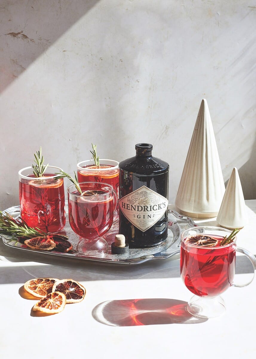 Recipe: In a mug, add Hendrick’s Gin, Campari, vermouth and blood orange juice. Add hot water and mix together. Garnish with fresh rosemary, a cinnamon stick or a dehydrated citrus wheel.