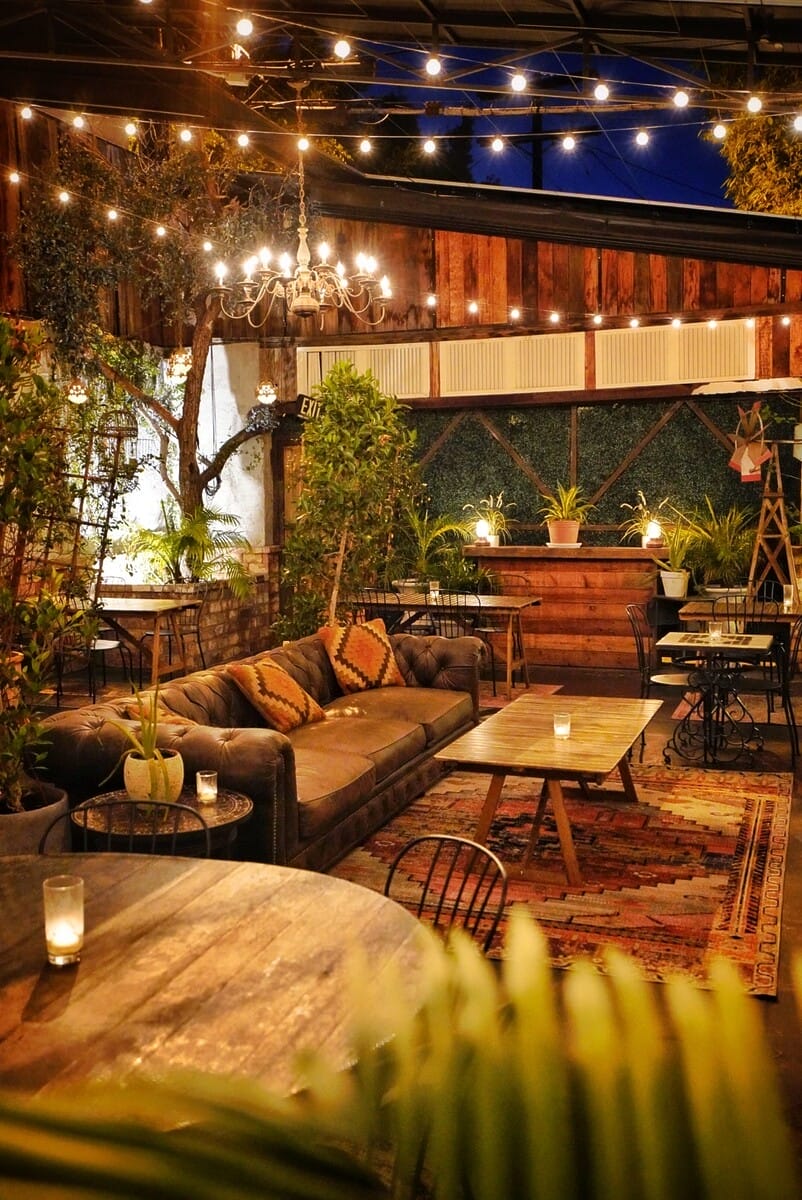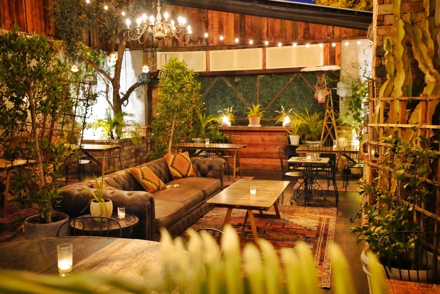 Transport yourself to 19th-century England when you visit The Wellesbourne in West LA. Named after William Shakespeare’s home village, The Wellesbourne screams cozy with its vintage bar, antique paintings and elegant fireplace. The leather couch and chairs that surround the fireplace will make you want to sip on an Old Fashioned, and you’ll also find comfortable booths squeezed between towering library-esque bookcases. Though the cocktails are certainly the star of the show, there is a food menu featuring small bites like sliders, bacon-wrapped dates and deep-fried cauliflower. Experience the charm of an English pub with the added luxury of fireside dining right in the heart of LA.