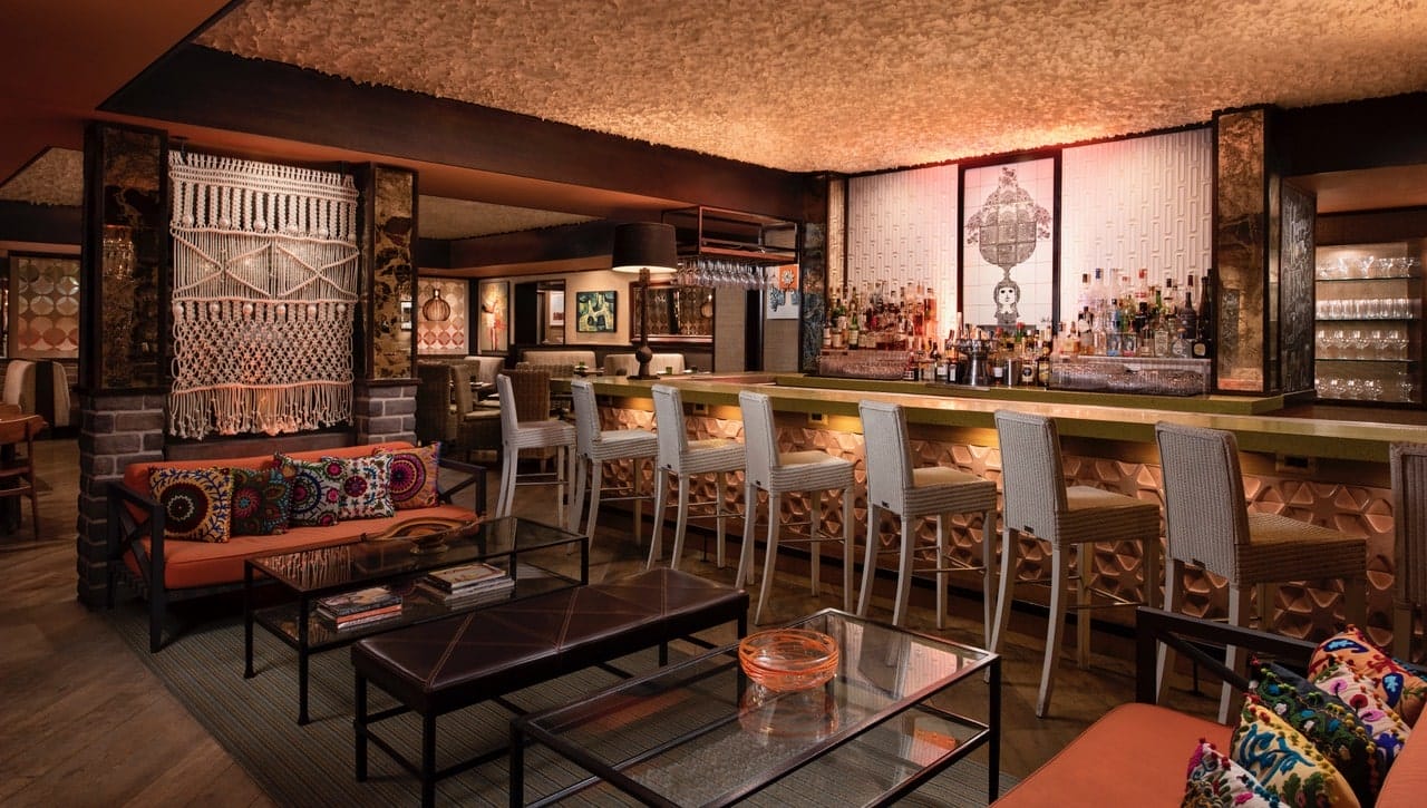 Between its prohibition-style decor, fireside dining and world-class cocktails, it’s no wonder why Melrose Umbrella Co. is one of the most locally-loved bars in LA. The rustic interior sets the scene with an old-school fireplace in the back, cozy booths and vintage chandeliers. There is also a transportive patio out back with another brick fireplace and more spacious tables. Whether you prefer spirit-forward cocktails or booze-free mocktails, Melrose Umbrella Co. has something for everyone. If you get hungry during your visit, snack on a charcuterie board or some steak frites.