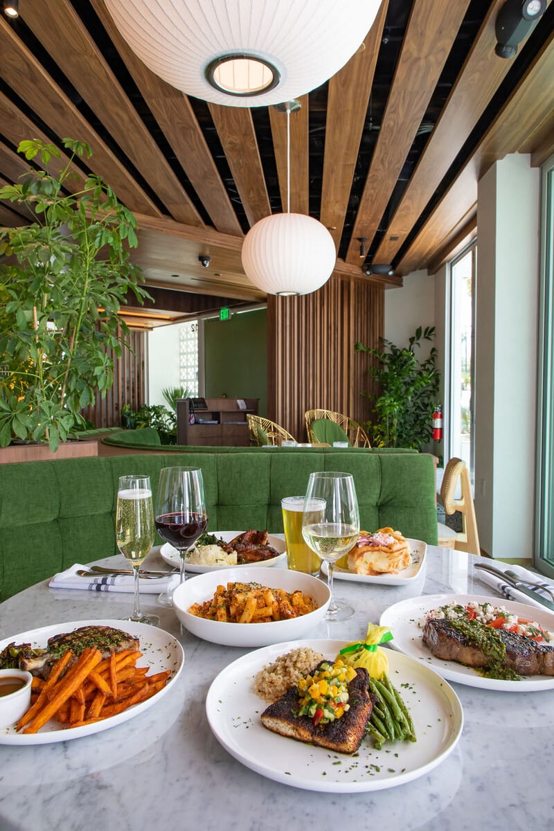 To close out this iconic girls’ day, we’re stepping into beach house bliss at Shorebird. This airy, modern eatery feels like it was pulled straight from a Nancy Meyers movie. Think bright, breezy interiors, crisp white accents and a laid-back yet upscale atmosphere that instantly puts you in vacation mode. At the heart of the menu is the wood-fire grill, where premium cuts and fresh seafood are cooked over an open flame.